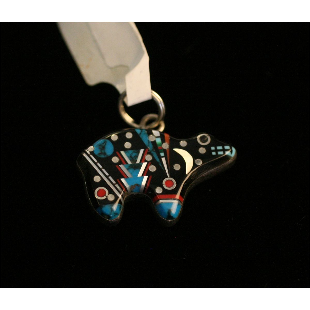 Pendant inlaid with many different stones, Turquoise Coral and Sterling, 3/4" x 1", -530029-