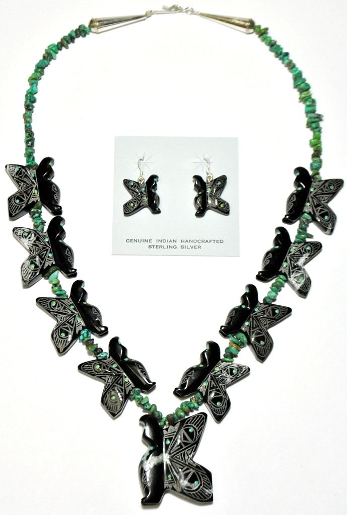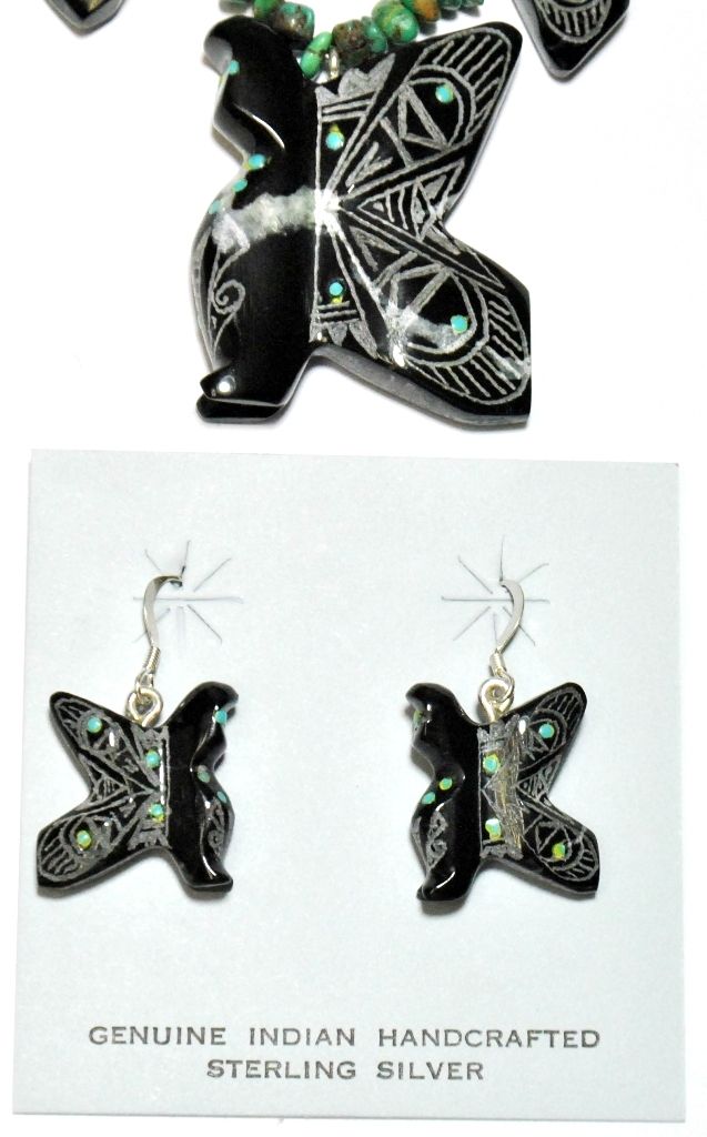 Zuni Black Jet Fetish Necklace & Earrings Set - Dilbert Gasper