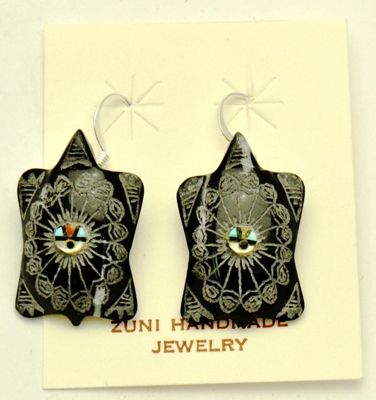 Zuni Black Marble Turtle Earrings - Dilbert Gasper