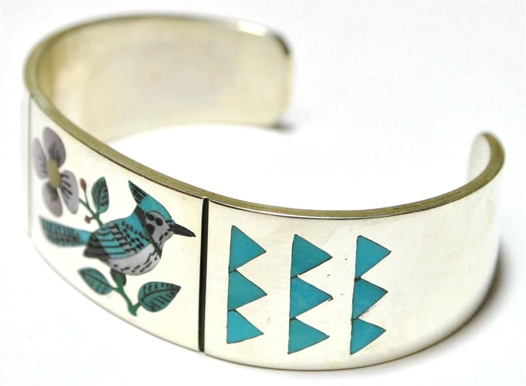 Zuni Blue Bird Inlay Sterling Silver Cuff Bracelet - Rudell & Nancy Laconsello