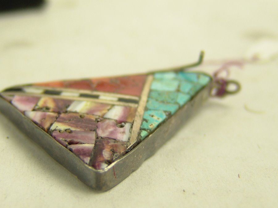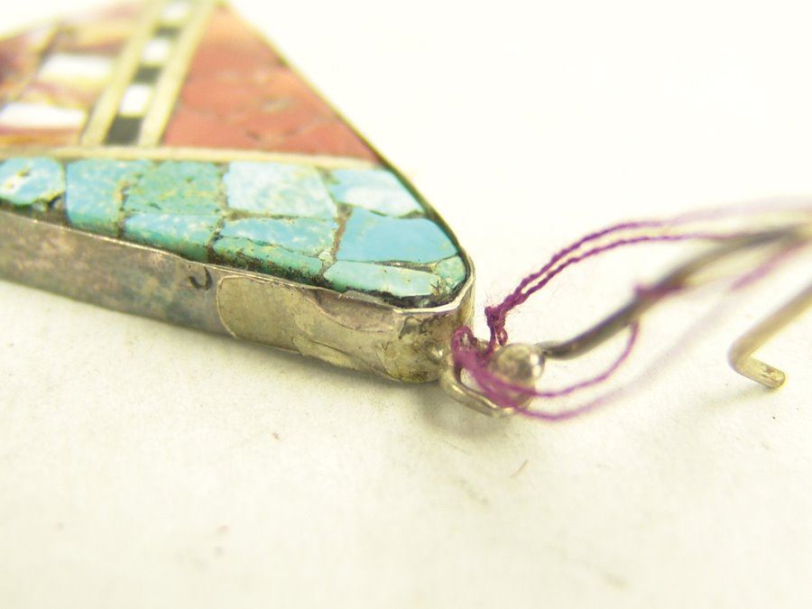 Wonderful, oval shaped, all silver bolo tie with channel inlay coral sections on each side, plus natural contour, traditionally set coral stones in the middle and on the matching custom tips. Very good condition.,,
