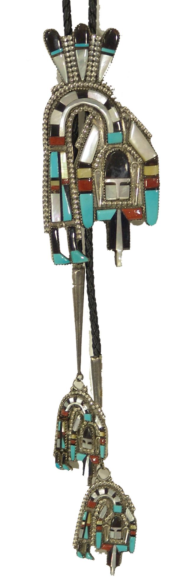 Circa 1970s, H.E. Cellicion, Beautiful raised mosaic inlay bolo with custom matching tips. 4-1/4" x 2"