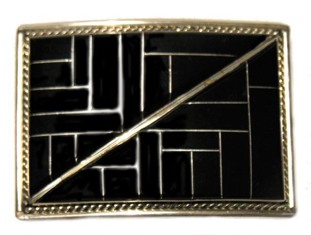 Circa 1964, F. Long, Beautiful heavy silver buckle with black onyx channel work and rope edge, hallmarked. 2-1/8" x 2-3/4"
