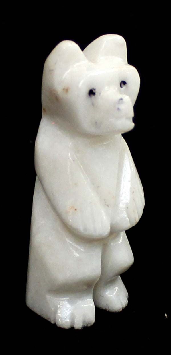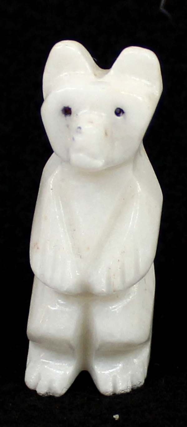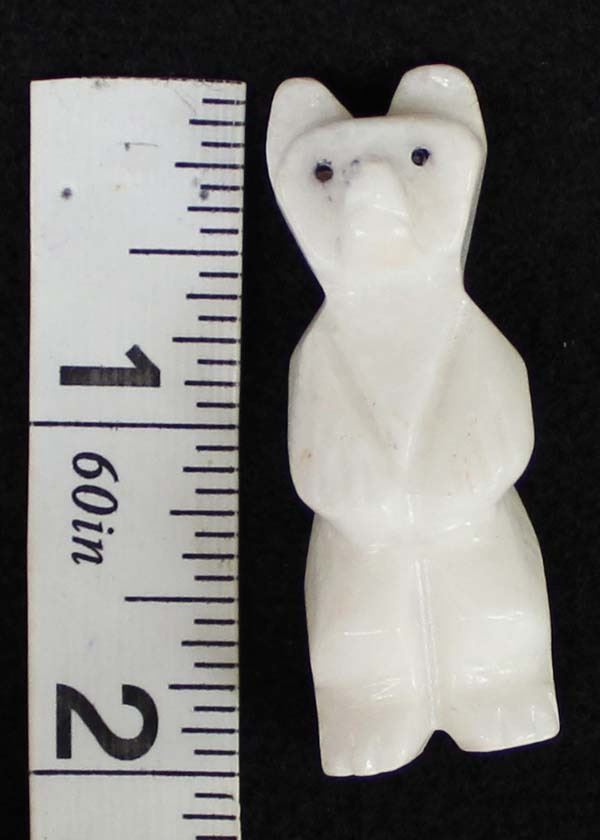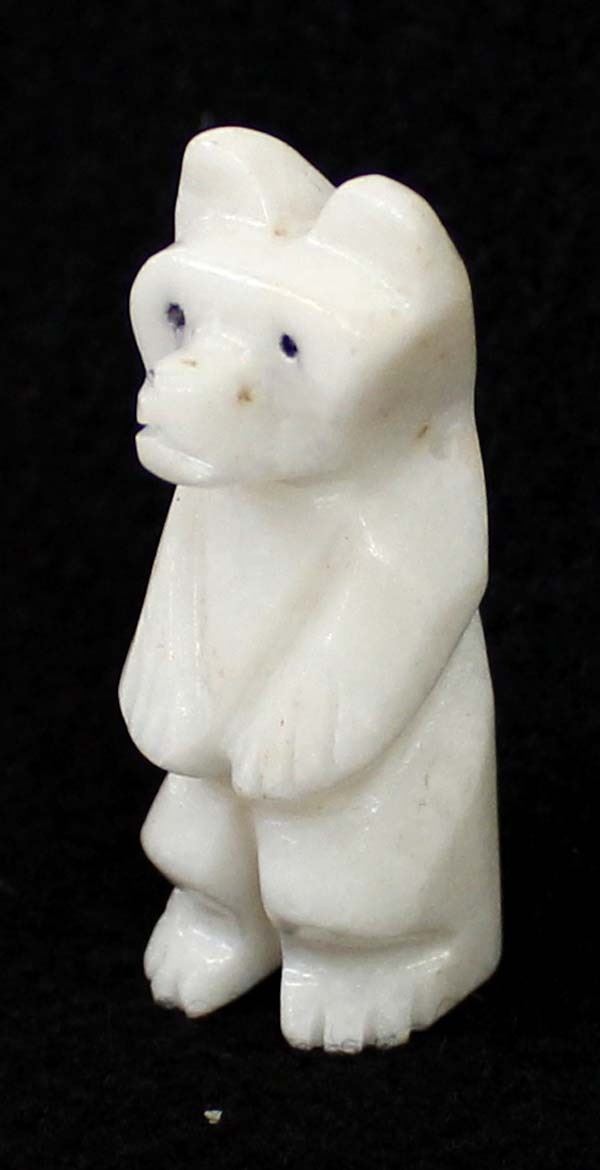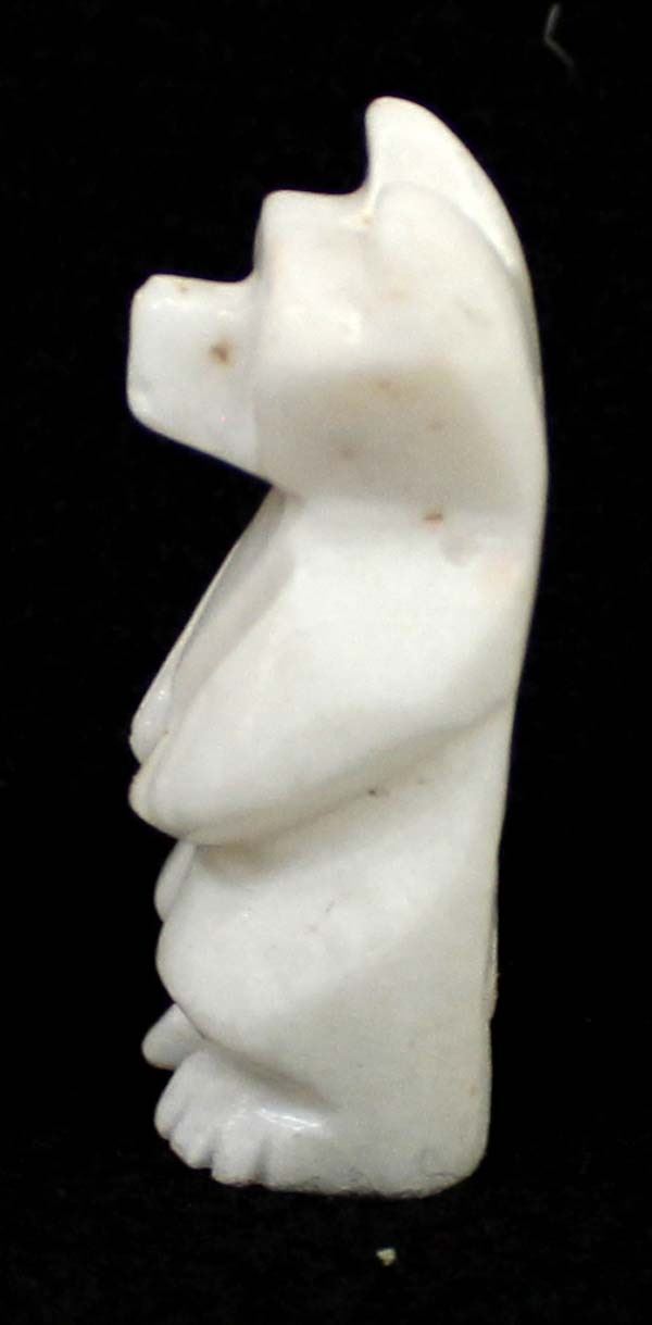Native American Zuni Carved Alabaster Standing Bear Fetish, measures 2'' x .75'' and has artist's initials on the bottom MQ, possible artist Marilyn Chuyate Quam