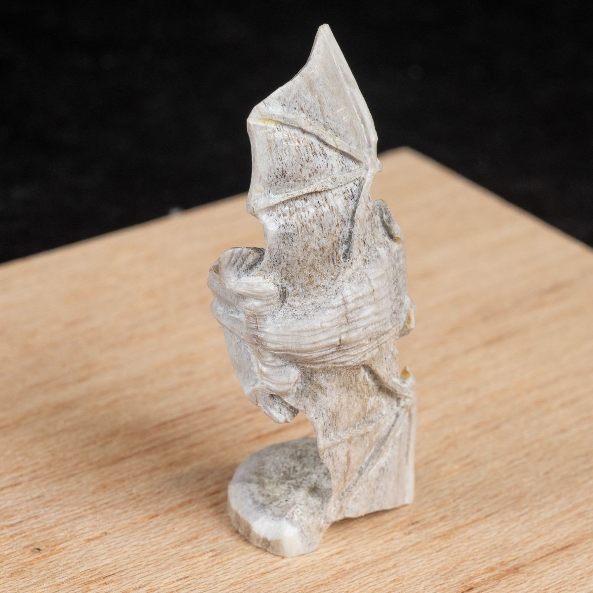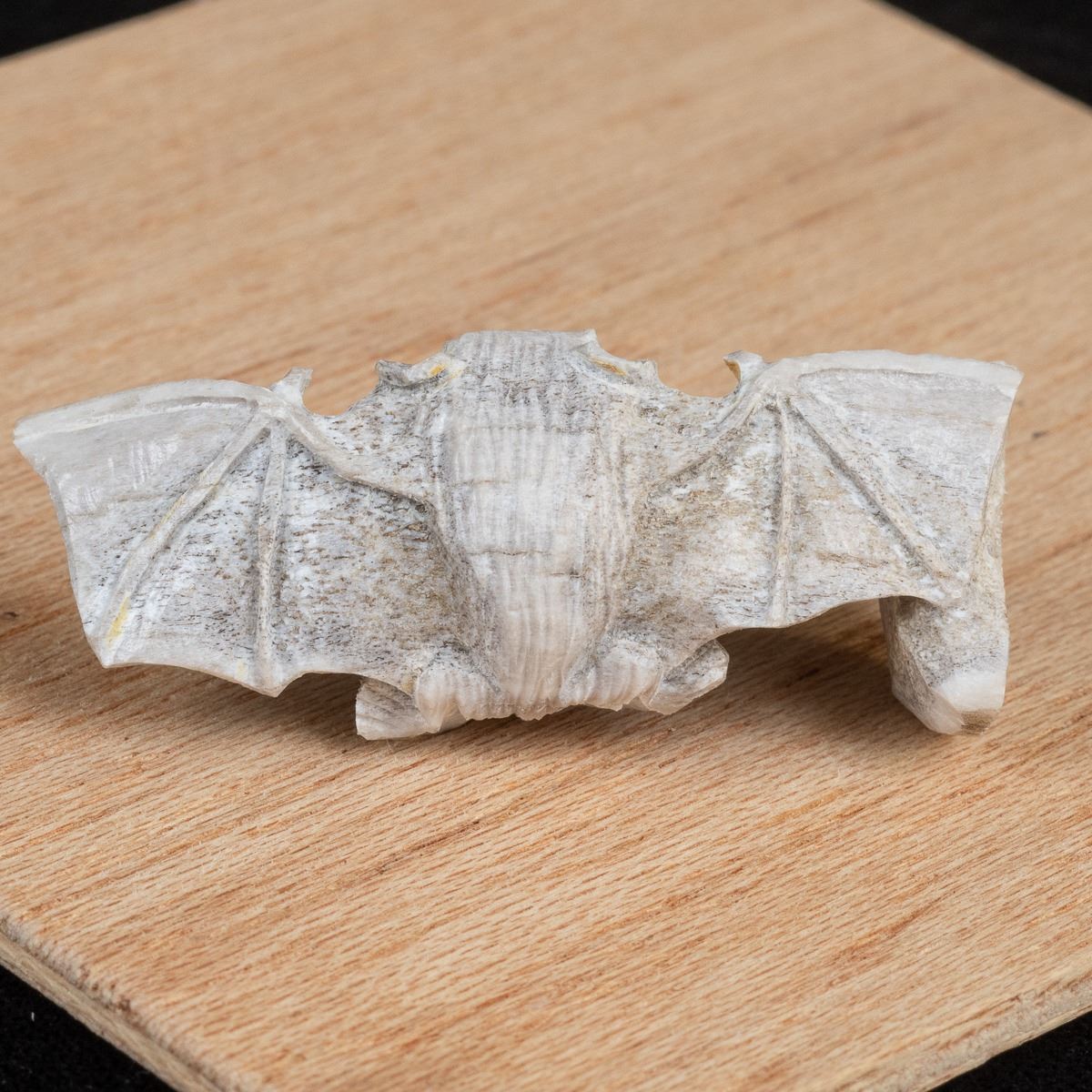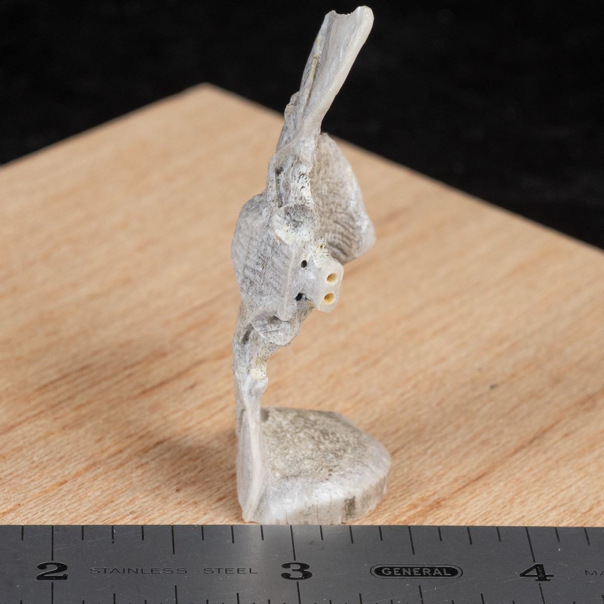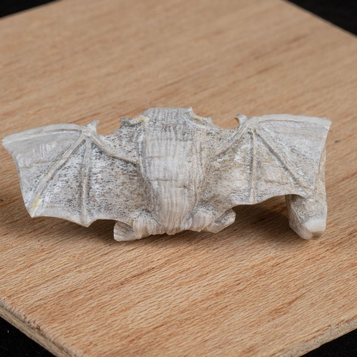 Native American Zuni Carved Antler Bat Fetish by Lewis Malie, measures 2.25''H x 1'' x .75'' and is signed on the bottom