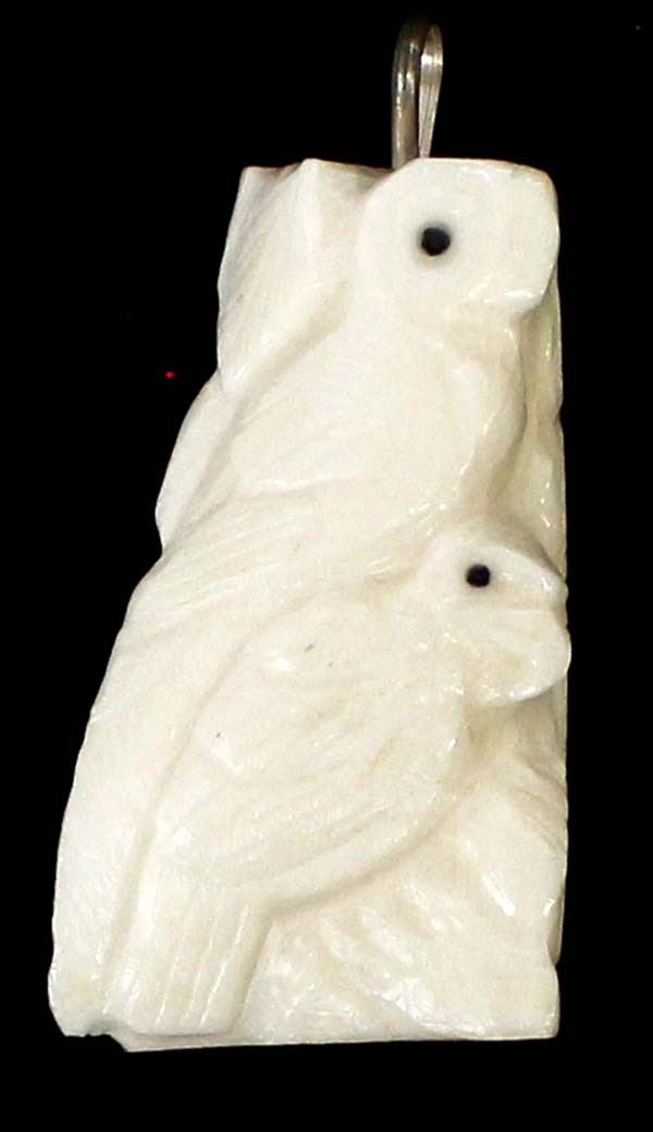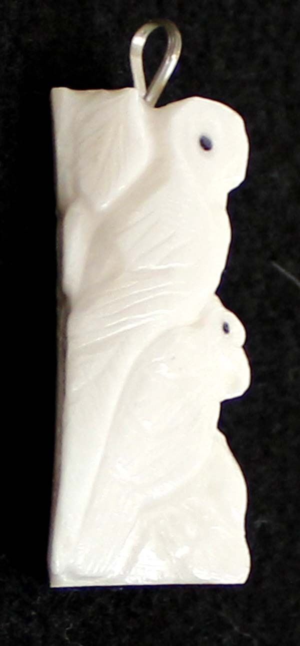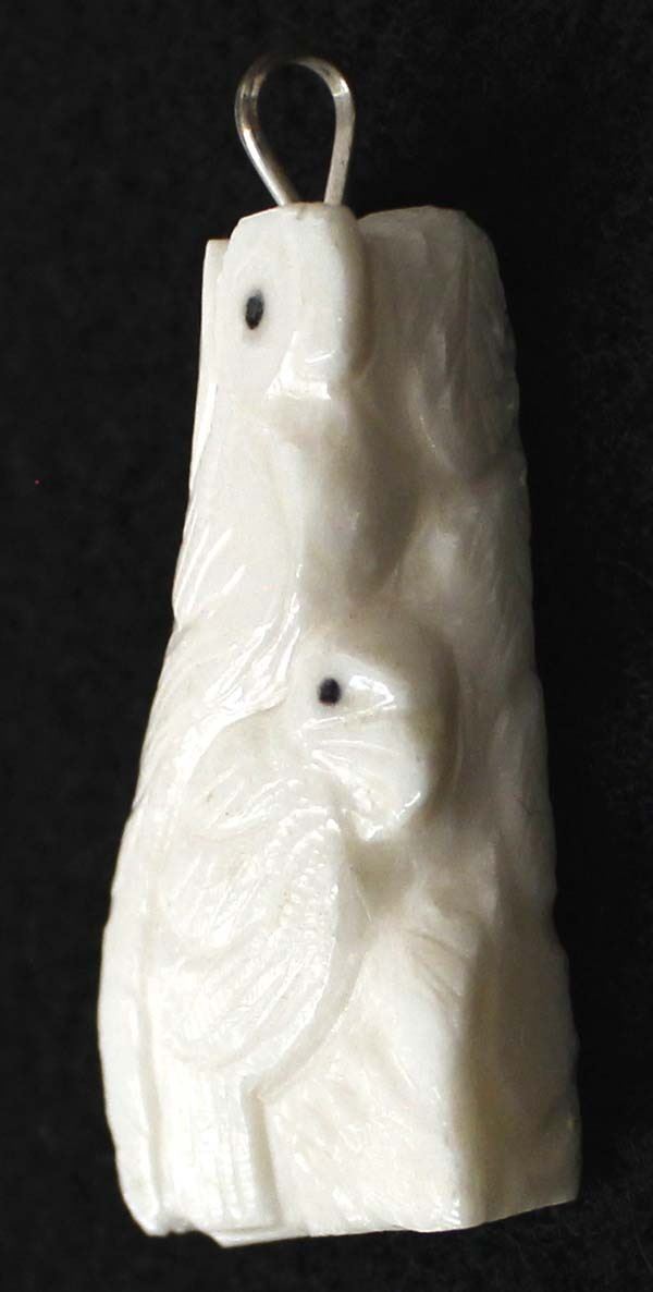 Native American Zuni Carved Antler Bird Fetish Pendant, measures 2'' x 1'' x .25'' and has artist's initials on the side, possible artist Claudia Peina