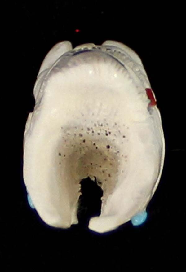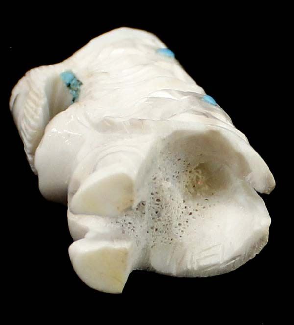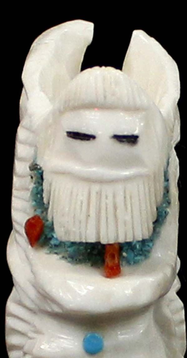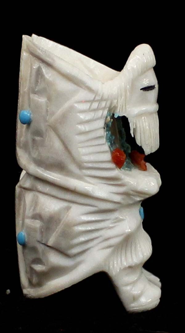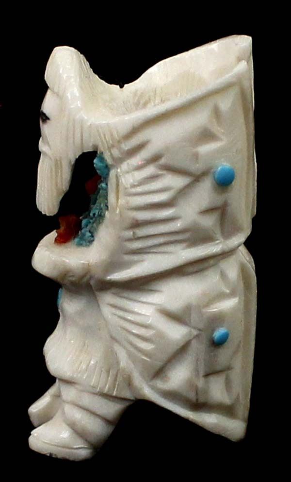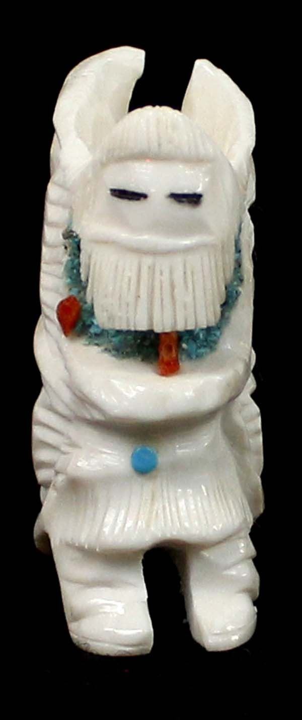 Native American Zuni Carved Antler Butterfly Maiden Fetish by Mel Lasoyeta, measures 1.5'' x .75'' x .5'', embellished with crushed turquoise, coral, and turquoise microdots, signed on the bottom MEL