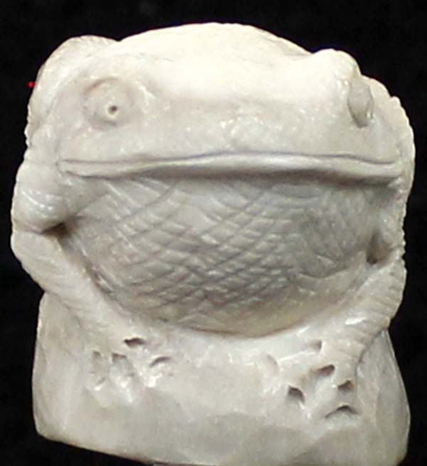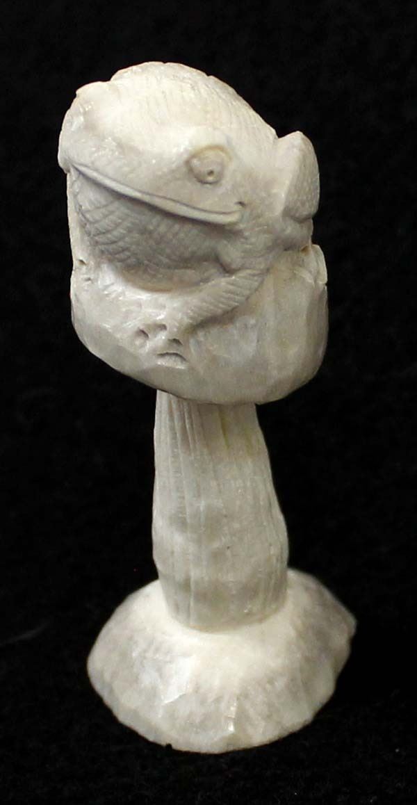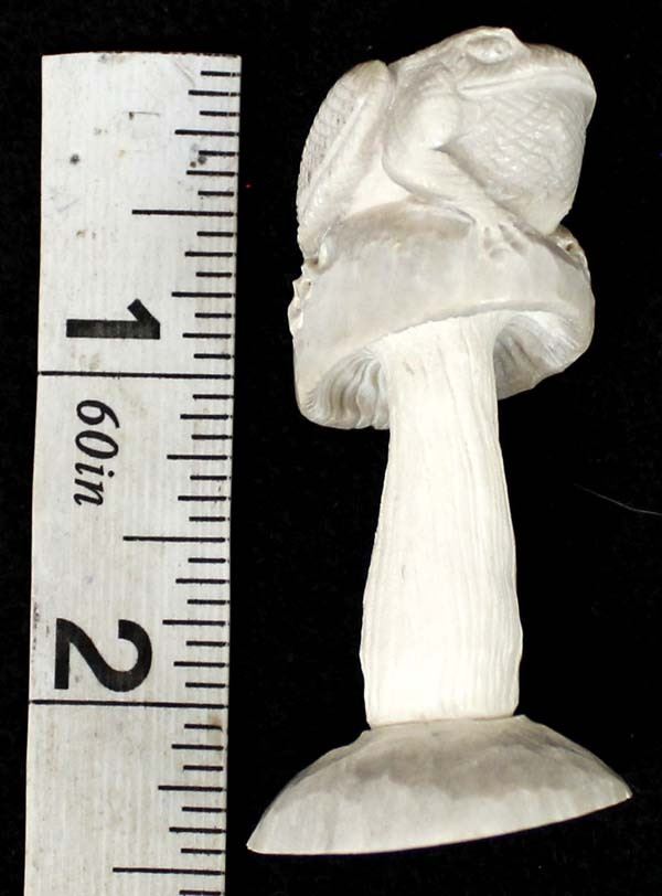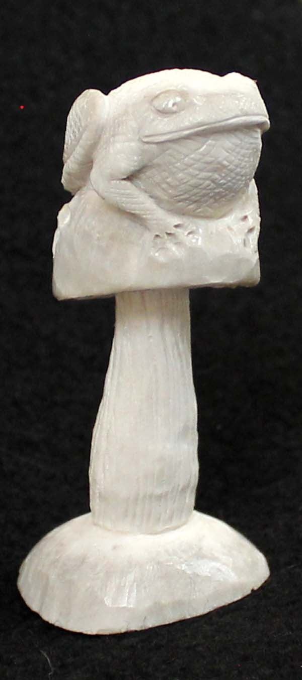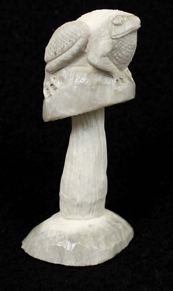 Native American Zuni Carved Antler Frog on a Toadstool Fetish by Esteban Najera, measures 2'' x 1'' x 1'' and is signed on the bottom