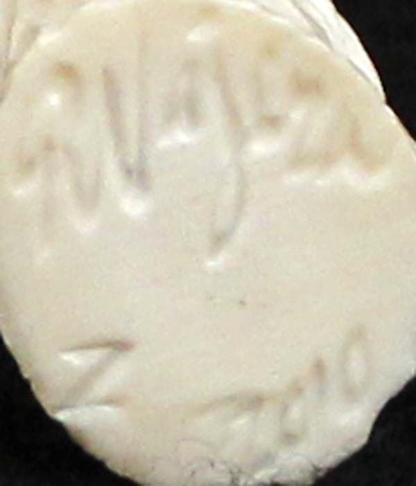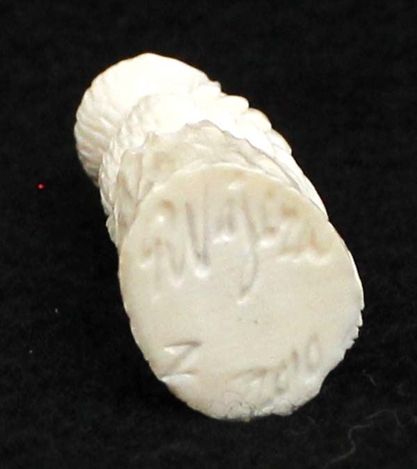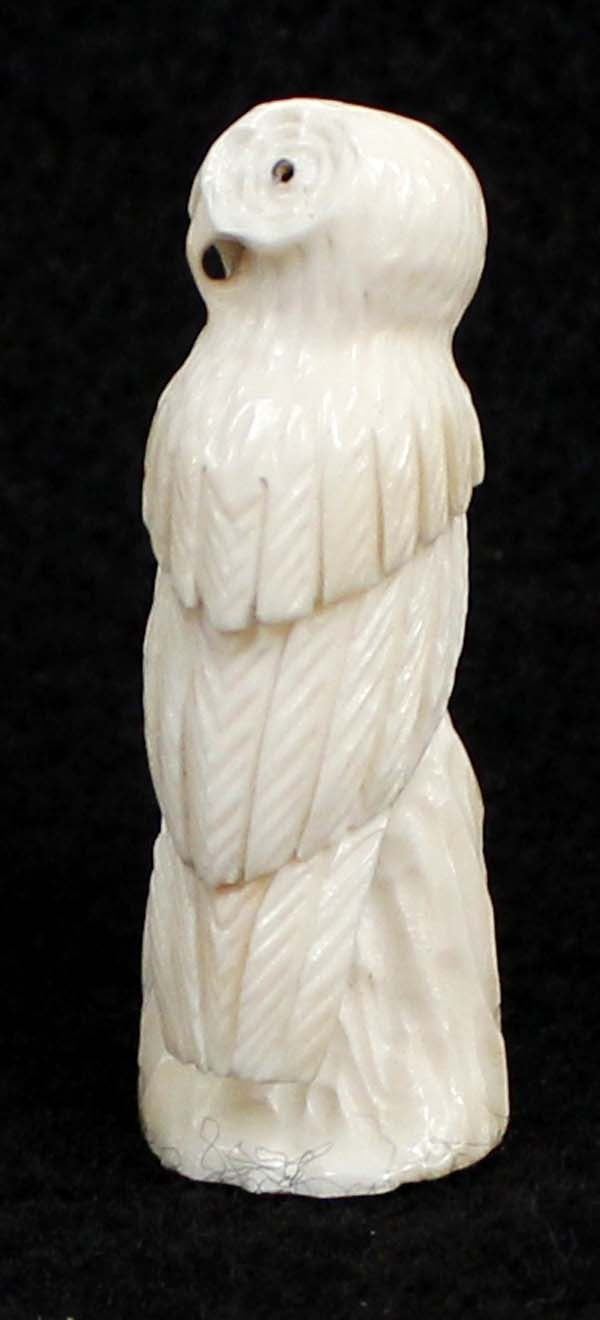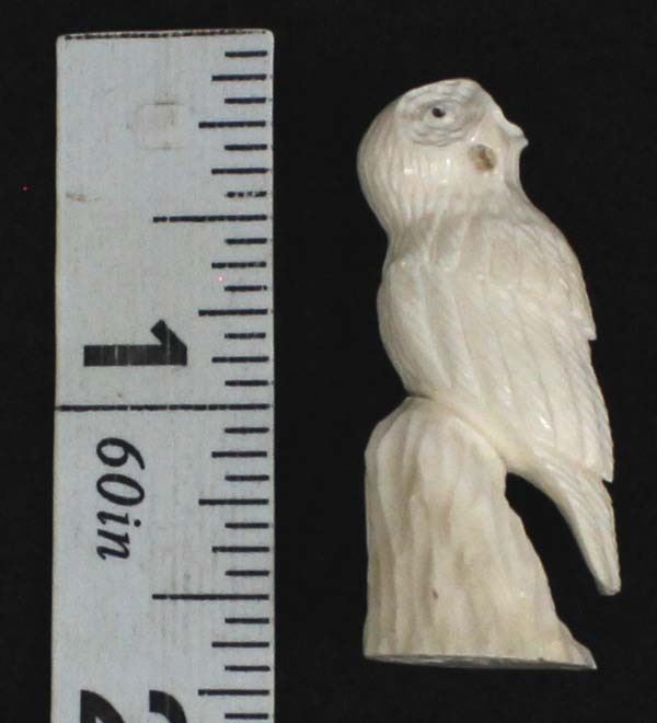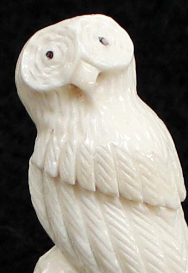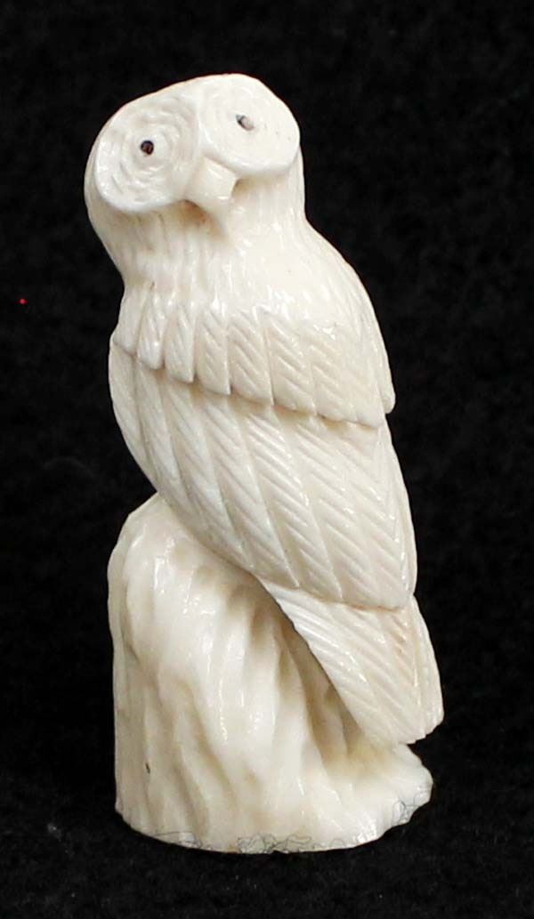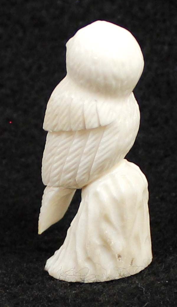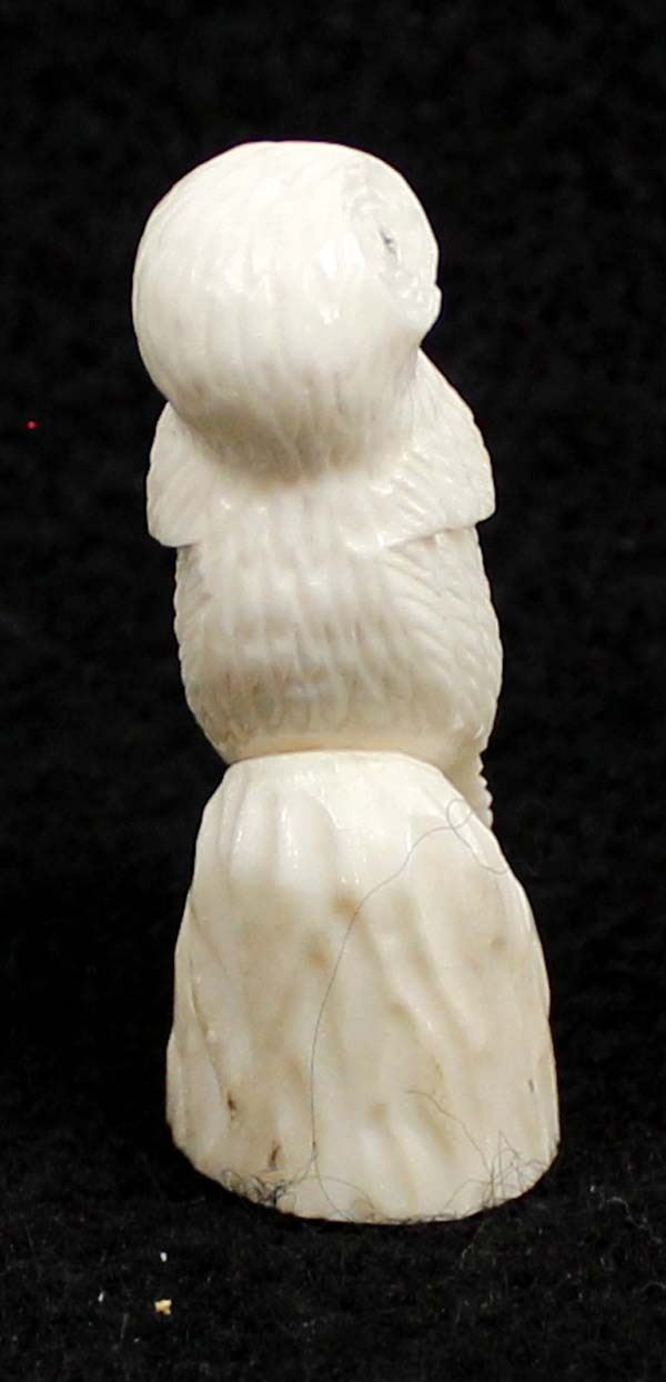 2010 Native American Zuni Carved Antler Owl Fetish by Ruben Najera, measures .5'' x 1.5'' x .5'' and is signed on the bottom, jet eyes, very nice detail