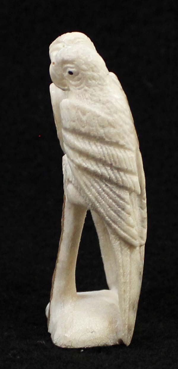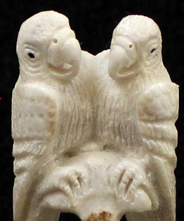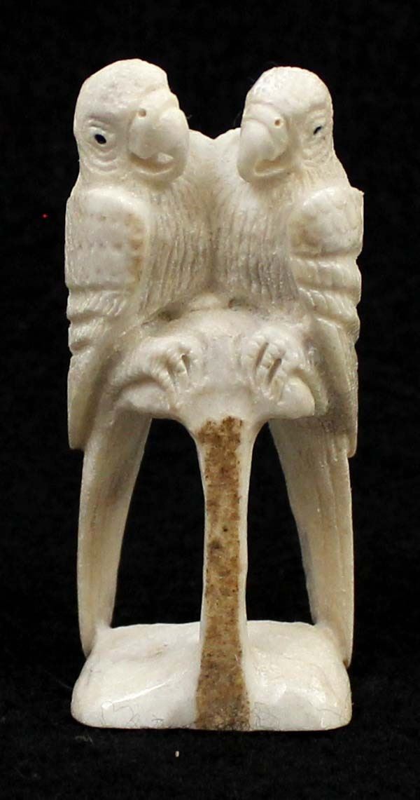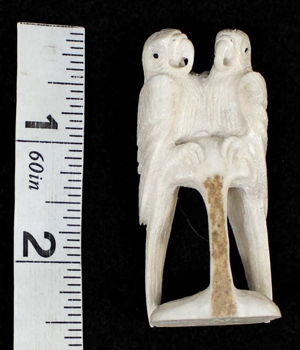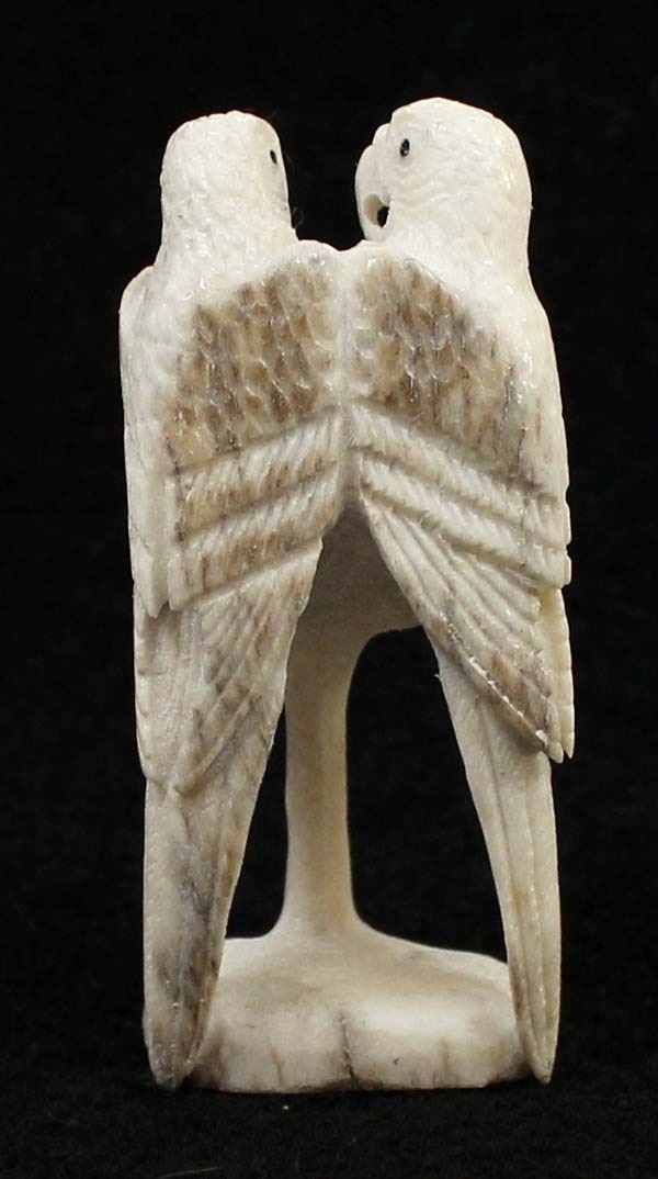 2012 Native American Zuni Carved Antler Double Parrot Fetish by Esteban Najera, measures 2.5'' x 1'' x .5'' and has artist's intials on the bottom