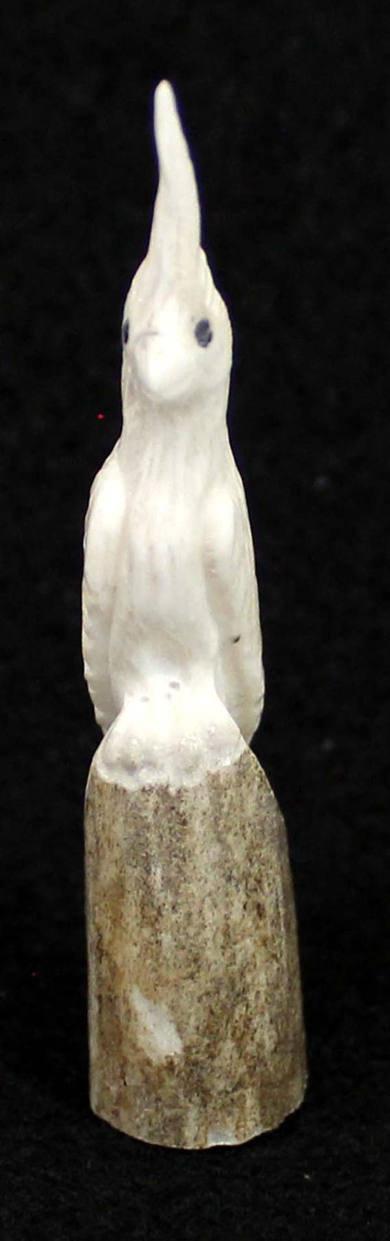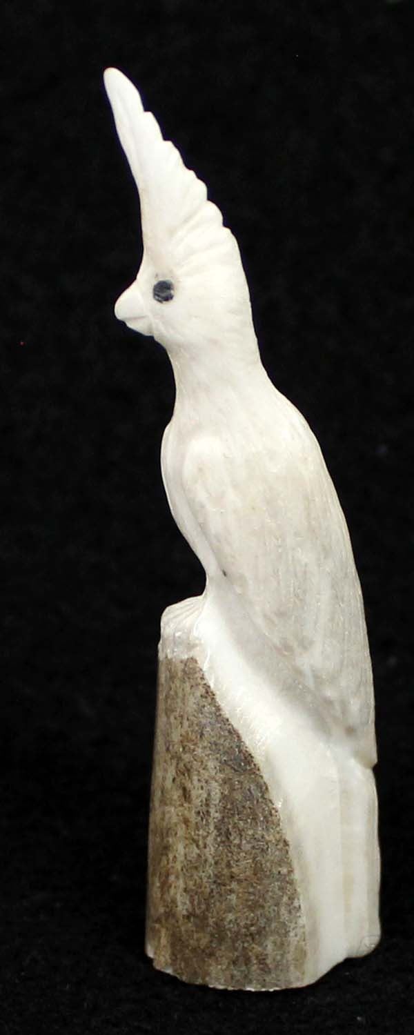 Native American Zuni Carved Antler Quail Fetish by C. Peina, measures 2.5'' x .75''