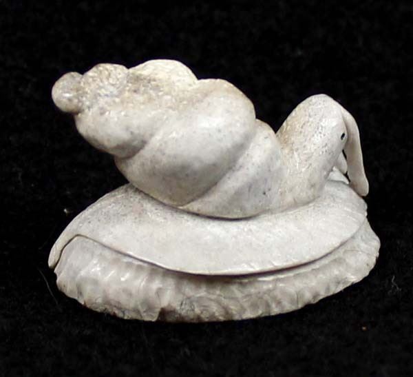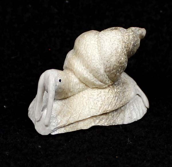 Native American Zuni Carved Antler Snail Fetish by Ruben Najera, measures 1.25'' x 1'' x .75'' and is signed on the bottom, FYI: ''Ruben Najera, the youngest nephew of the Laate clan of carvers, has developed a delicate style and innovative designs different from any other carver. His medium is exclusively deer antler. He was taught to carved at age 15 by his older brother Esteban.''