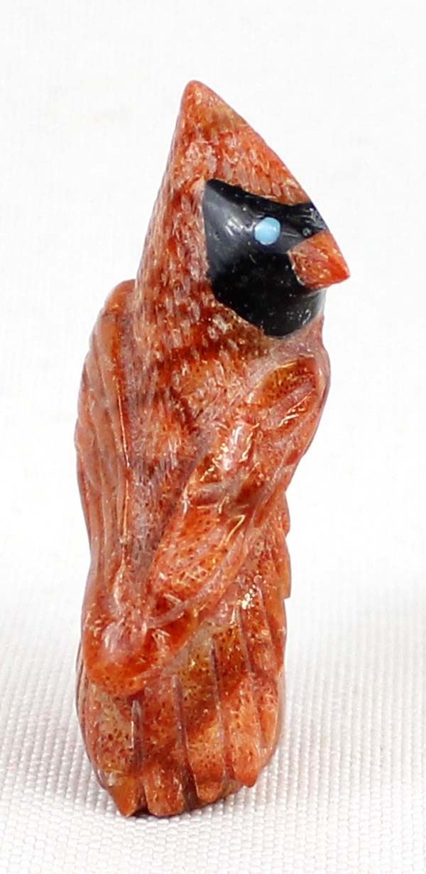 Zuni Carved Apple Coral Cardinal Fetish, H. Sandy
