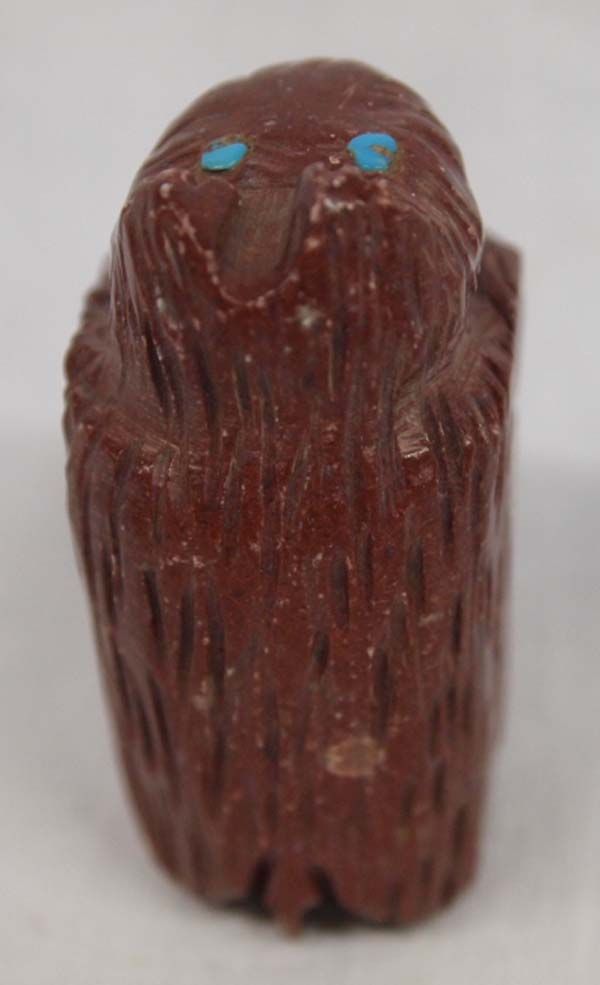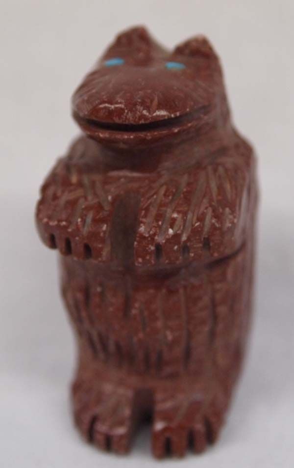Zuni Carved Bear Fetish, Turquoise Eyes, measures 1.75''H x 1'' x .75''