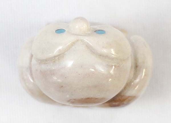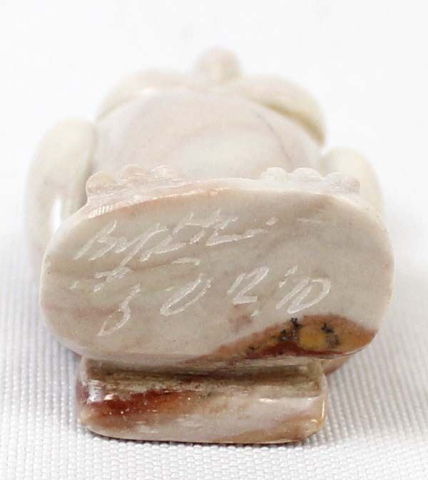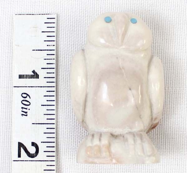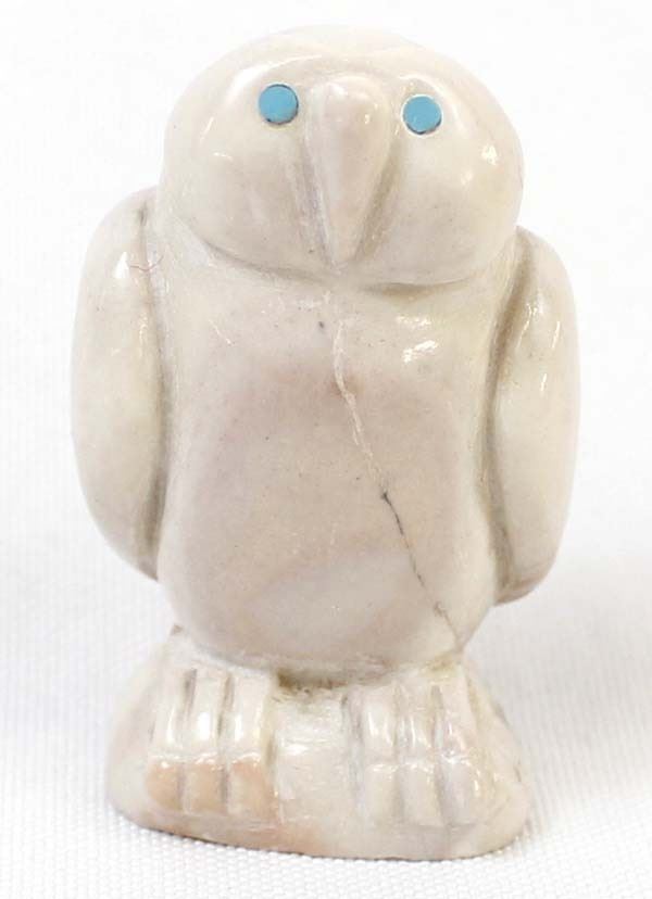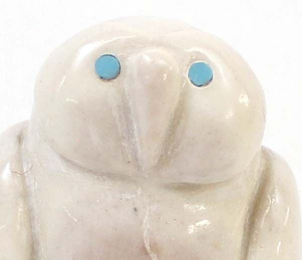 Native American Zuni Carved Dolomite Owl Fetish by Brian Yatsattie, measures 1'' x 2'' x .75''