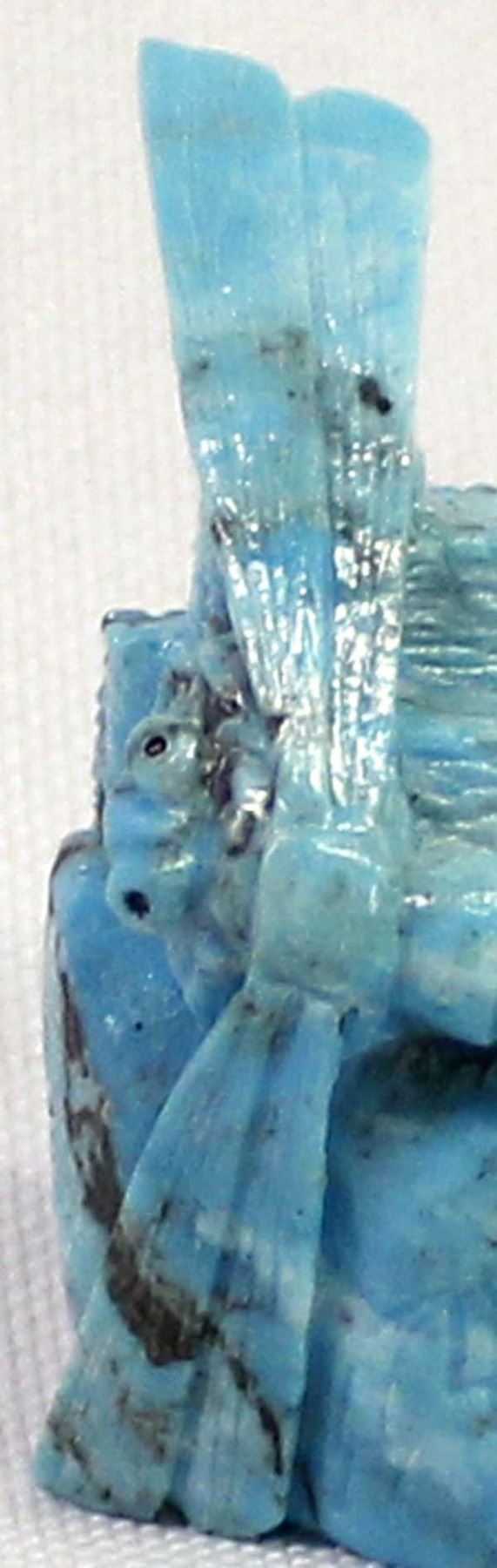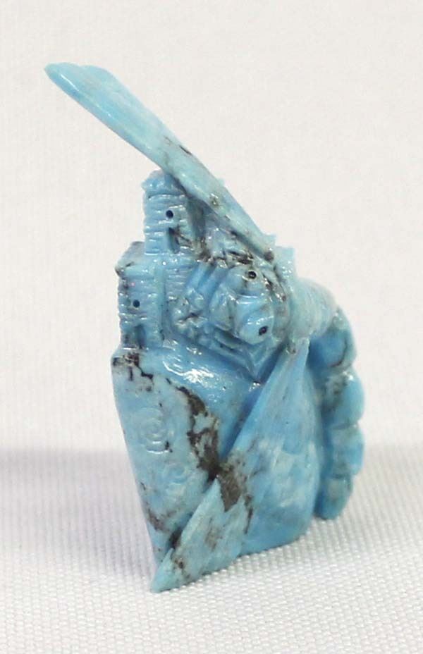 Native American Zuni Carved Dragonfly and Pueblo Fetish by Florentino Martinez, measures 1'' x 1.75'' and is signed on the bottom, FYI: ''Tino has been carving ever since the early 1980s. He has always loved delicate fetishes with superb detail - dragonflies with delicate wings and dancers with finely carved weapons.''