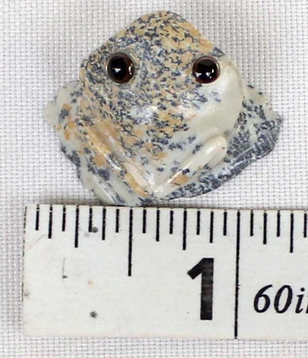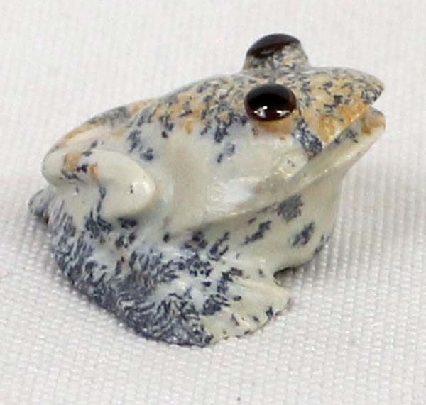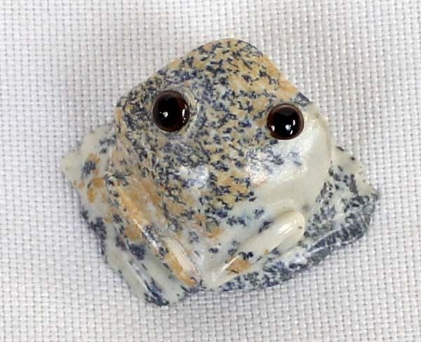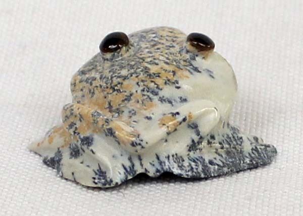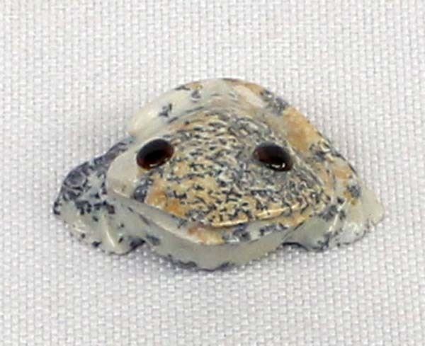 Native American Zuni Carved Fishrock Frog by Ricky Laahty, measures 1'' x 1.25'' and is signed on the bottom