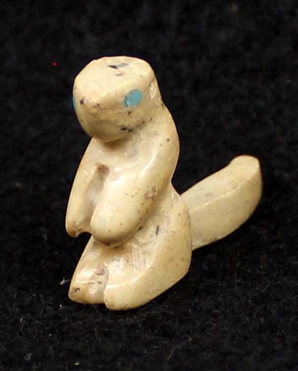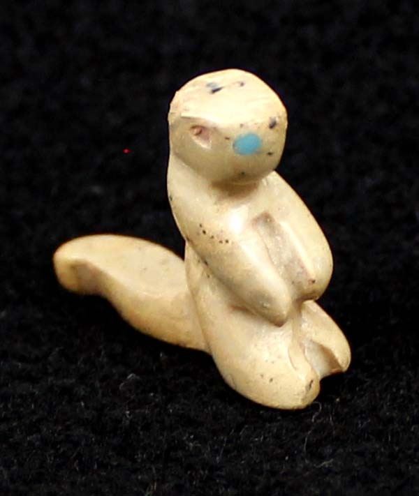Native American Zuni Carved Fishrock Squirrel Fetish by Bernie Laselute, measures 1'' x 1.5'' x .5''