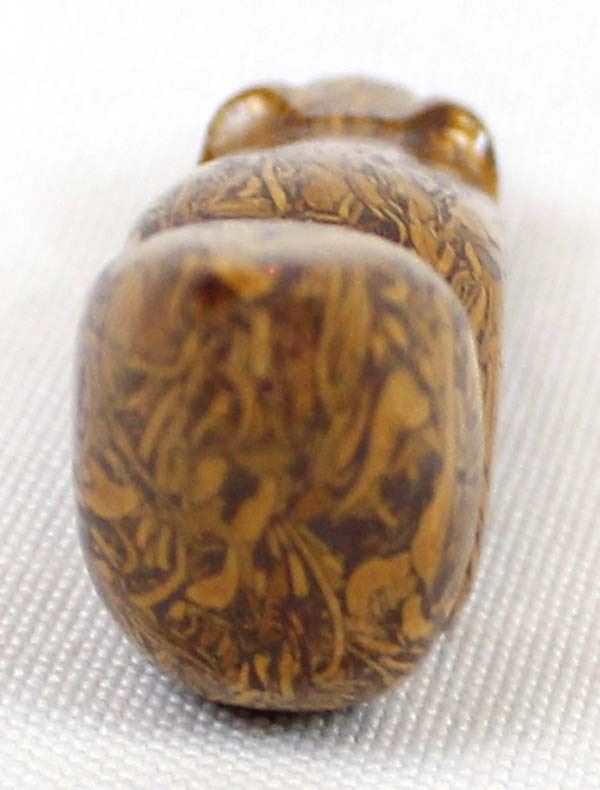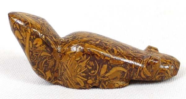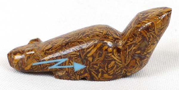 Native American Zuni Carved Fossil Jasper Squirrel Fetish by Clayton and Abby (Quam) Panteah, measures 1'' x 2'' and has artist's initials on the bottom, inlay turquoise heart line, gorgeous stone