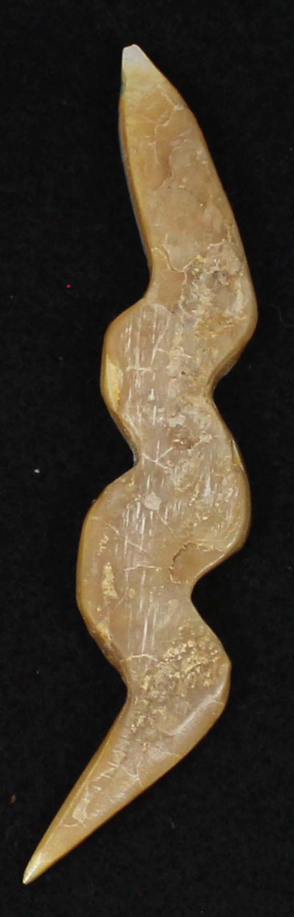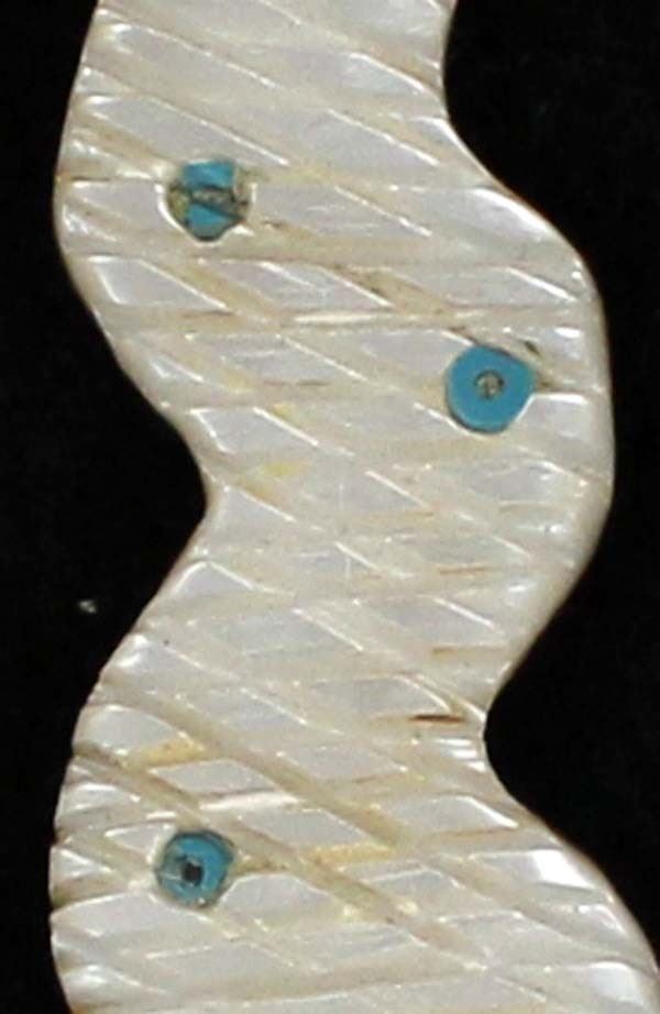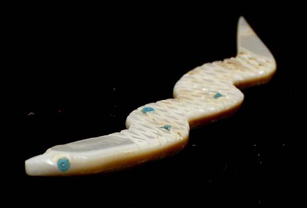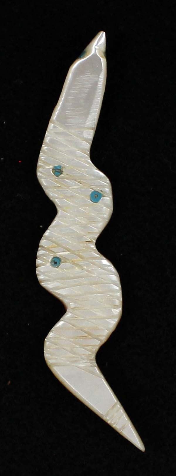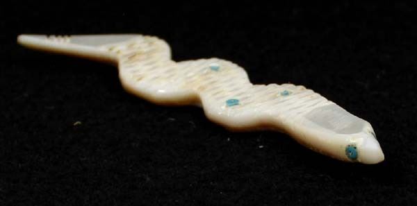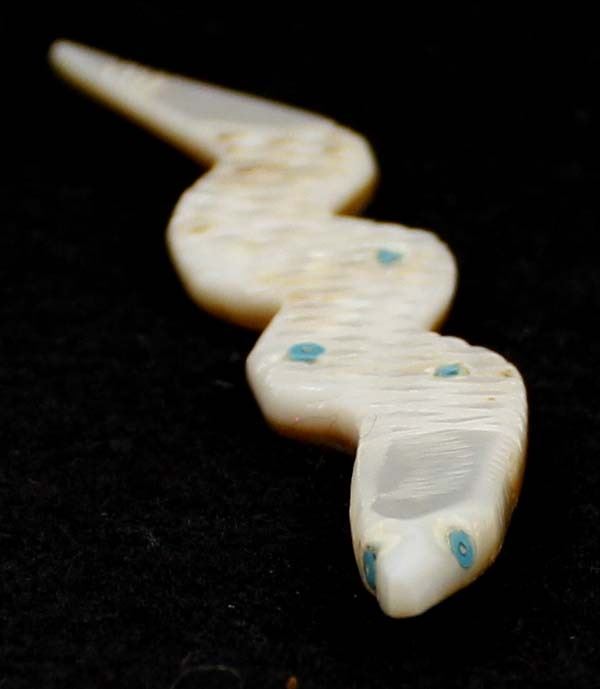 Native American Zuni Carved Mother of Pearl Snake Fetish, measures 3.75''L x .5''W, turquoise eyes