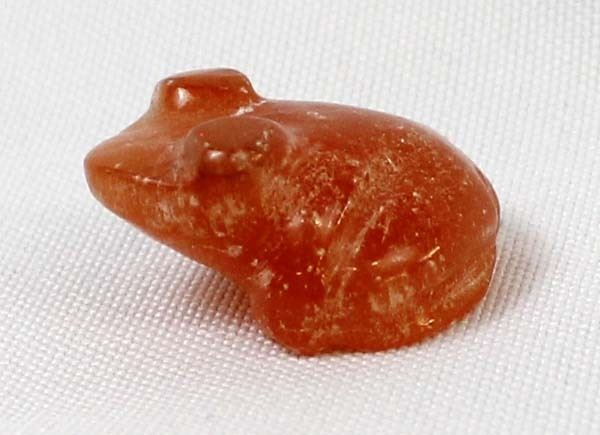 Native American Zuni Carved Orange Alabaster Frog Fetish, measures .75'' x 1'' x .5'', unsigned