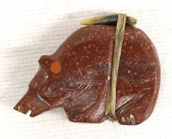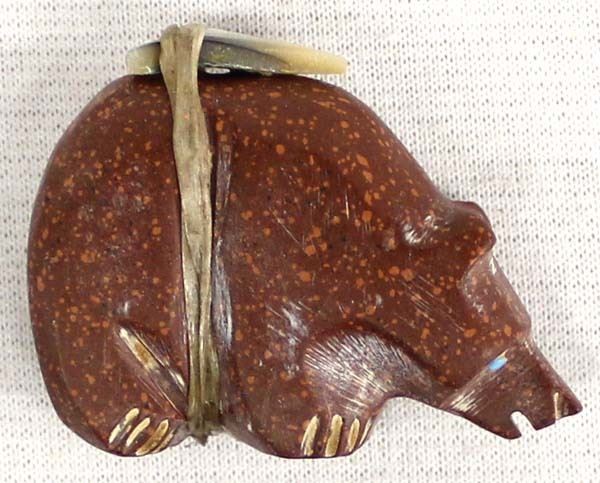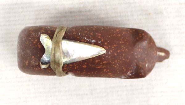 Native American Zuni Carved Pipestone Fetish, measures 1.5''L, carved abalone arrowhead spirit bundle, turquoise eyes