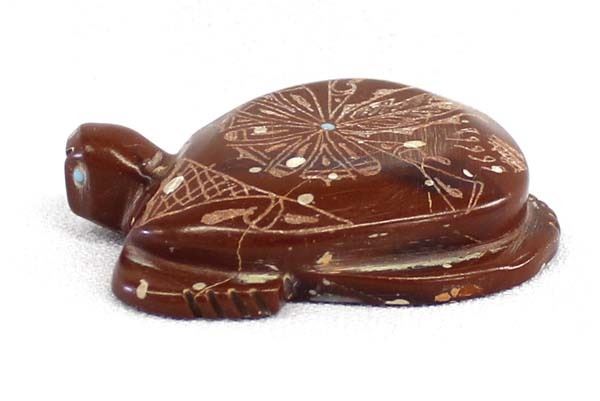 Brand New Native American Zuni Carved Pipestone Sea Turtle Fetish by Adrian Cachini, beautifully carved details on the back, microdot turquoise eyes and spot on back, signed on the bottom and measures 1.75'' x 2.25'', Sweet!!!!
