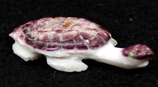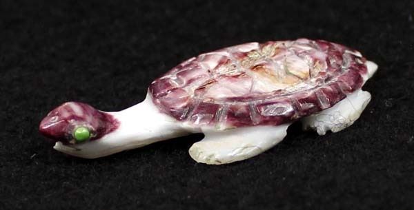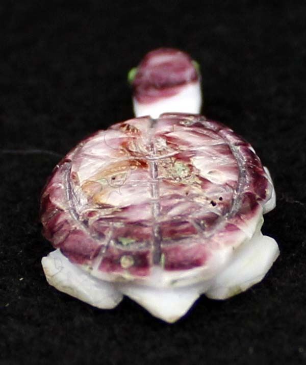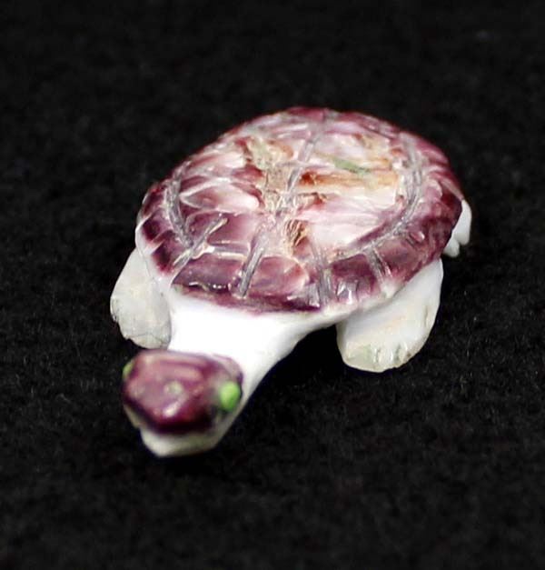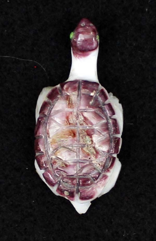Native American Zuni Carved Purple Shell Turtle Fetish by Andrew and Laura Quam, measures 1.5'' x .25'' x .25''H