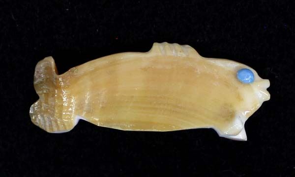 Native American Zuni Carved Red Shell Fish Fetish by Mike Yatsayte, measures 2''L x .75''H, turquoise eyes