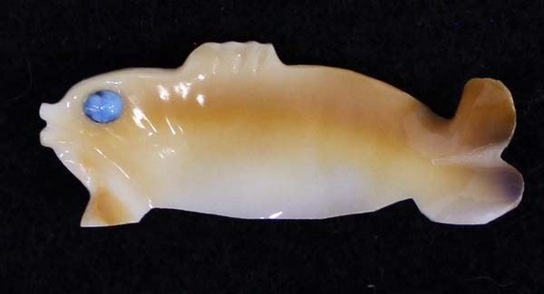 Native American Zuni Carved Red Shell Fish Fetish, measures 2''L x .75''H, turquoise eyes