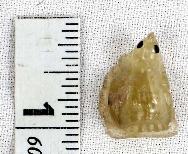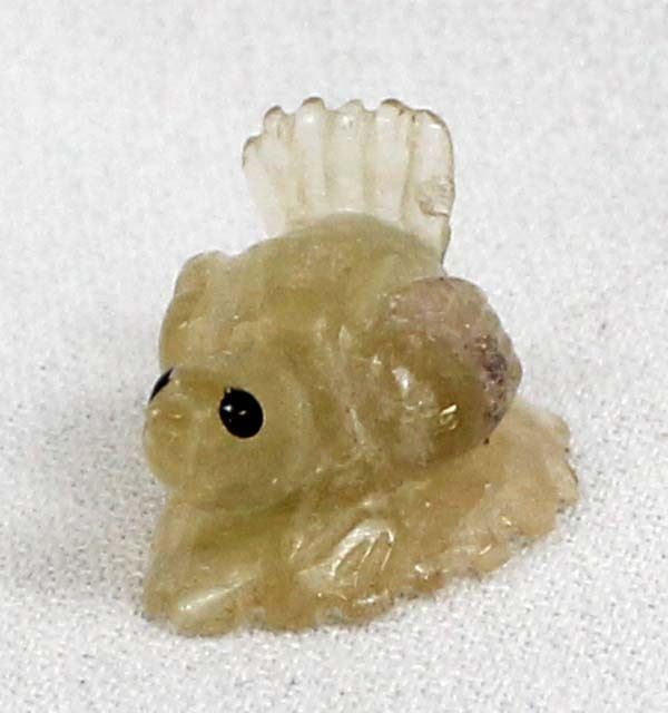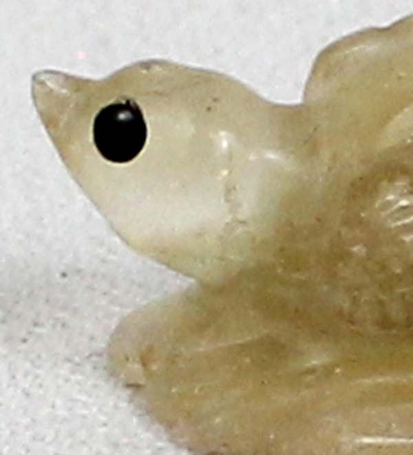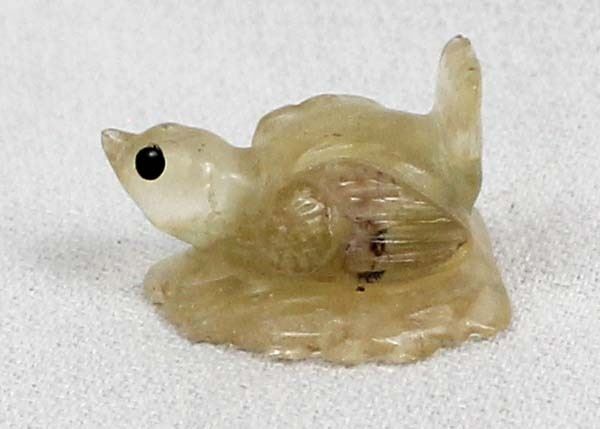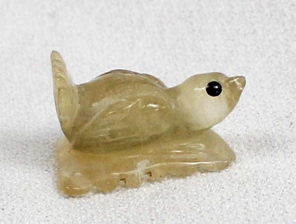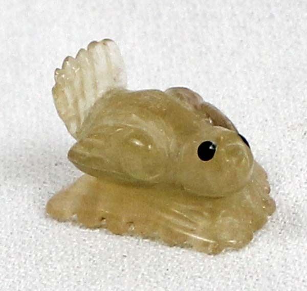Early Native American Zuni Carved Resin Bird on Leaf by Ricky Laahty, measures 1'' x .5'' x .75'' and is signed on the bottom, jet eyes