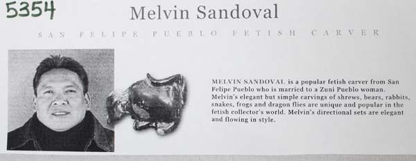 Native American Zuni Carved Stone Badger Fetish by Melvin Sandoval, measures 1'' x 3.5'' x .5''