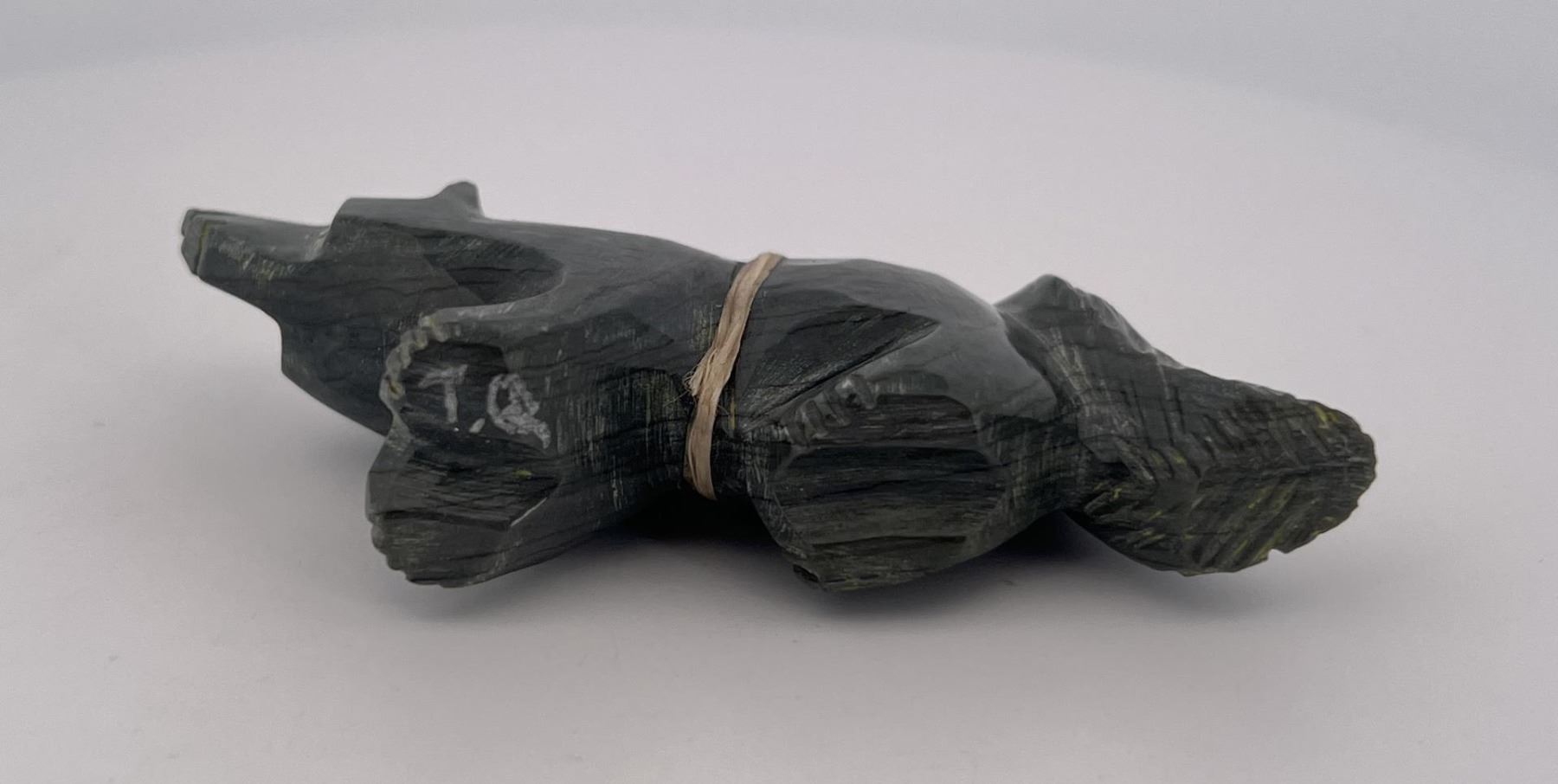 3" long, 1 1/2" tall, 5/8" tall. Signed TQ.