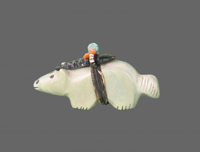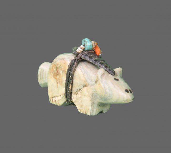 Zuni Carved Stone Fetish in form of Bear. Native American. Comes with Certificate of Authenticity signed by Joe Dan Osceola. (Size: See Last Photo for Measurements)