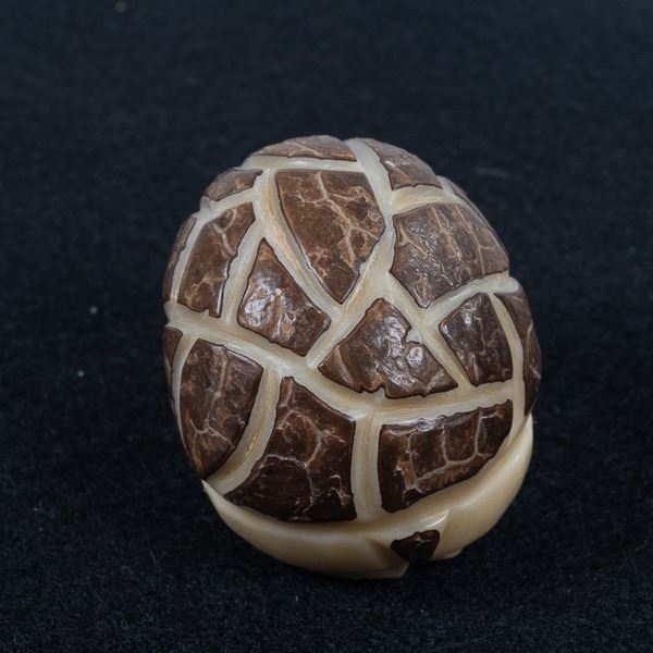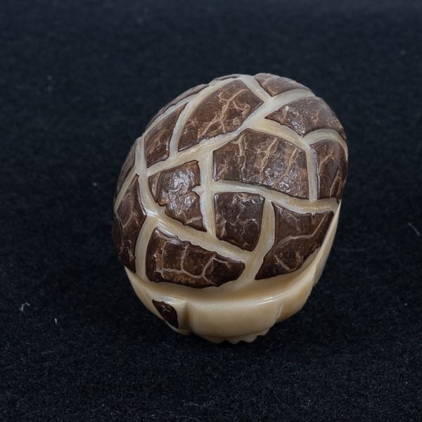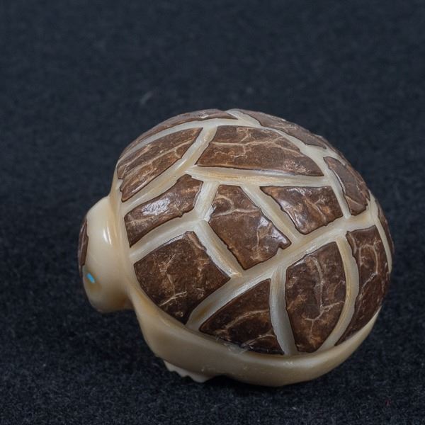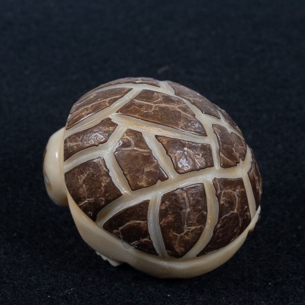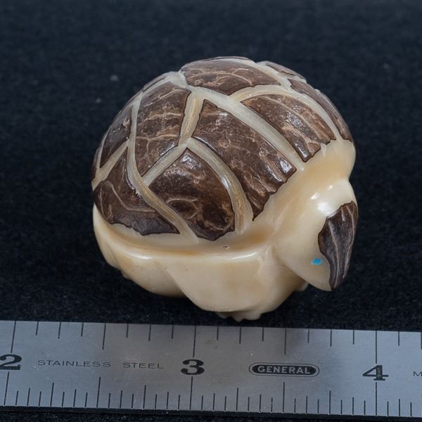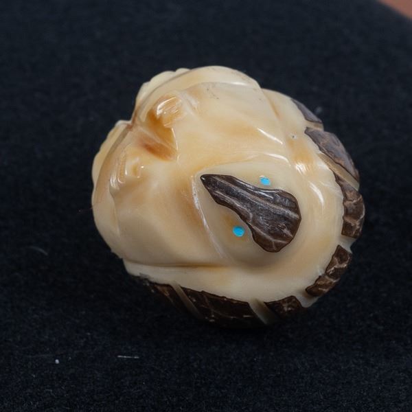 Native American Zuni Carved Tagua Nut Armadillo Fetish, measures 1.75'' x 1.75'' x 2'', turquoise eyes, possible artist Alvert Lamy