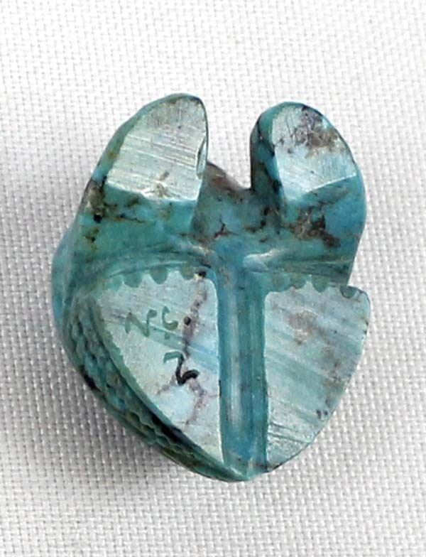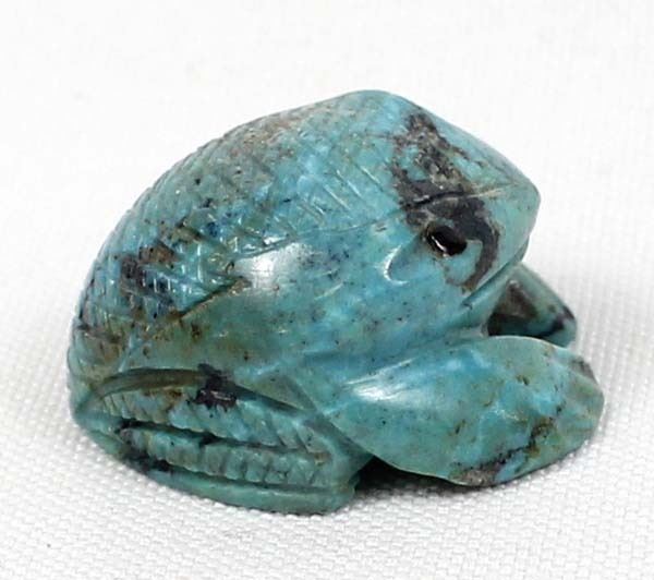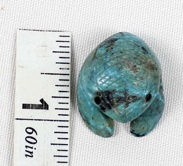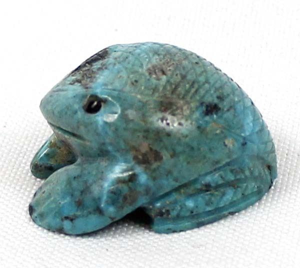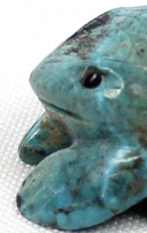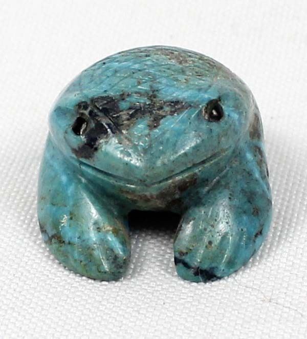 Native American Zuni Carved Turquoise Frog Fetish by Vivella Cheama, measures .75'' x 1'' and has artist's initials on the bottom, jet eyes