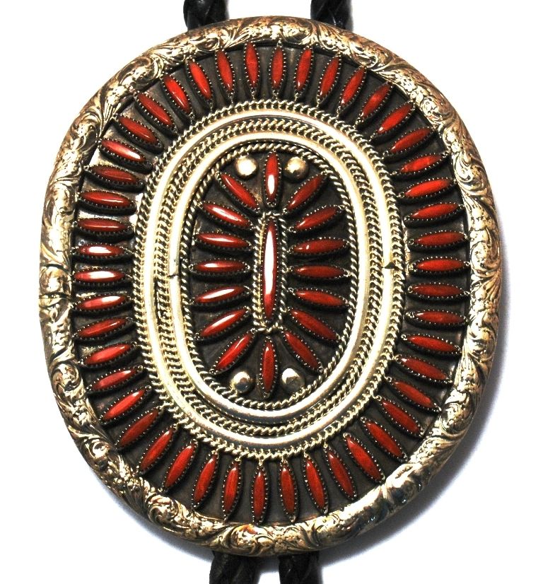 Zuni Coral Cluster Sterling Silver Bolo Tie - Gerald Etsate