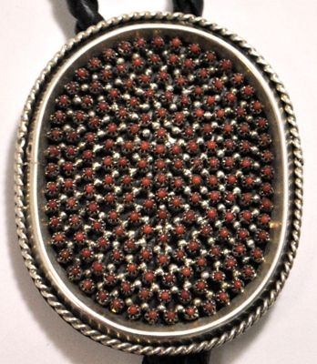 Zuni Coral Cluster Sterling Silver Bolo Tie - Sam Haloo