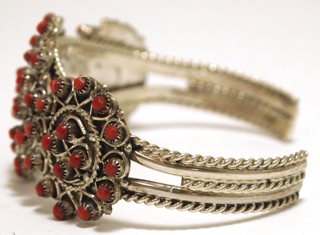 Zuni Coral Dots Sterling Silver Cuff Bracelet - Wayne Johnson