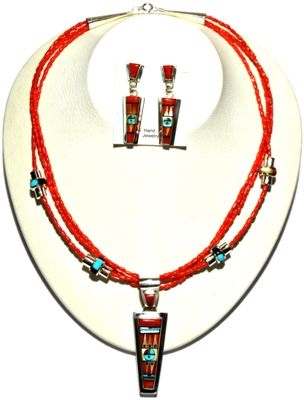Zuni Coral Necklace & Earrings Set - Raylan & Patty Edaakie