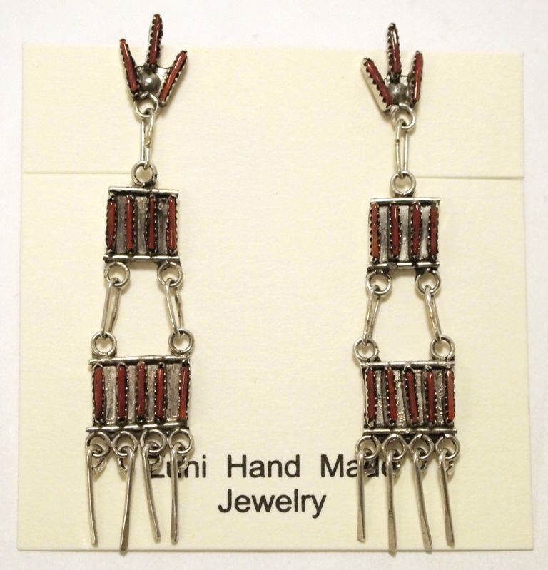 Zuni Coral Needlepoint Sterling Silver Post Earrings - Arlene Quam