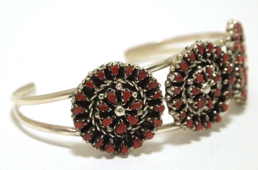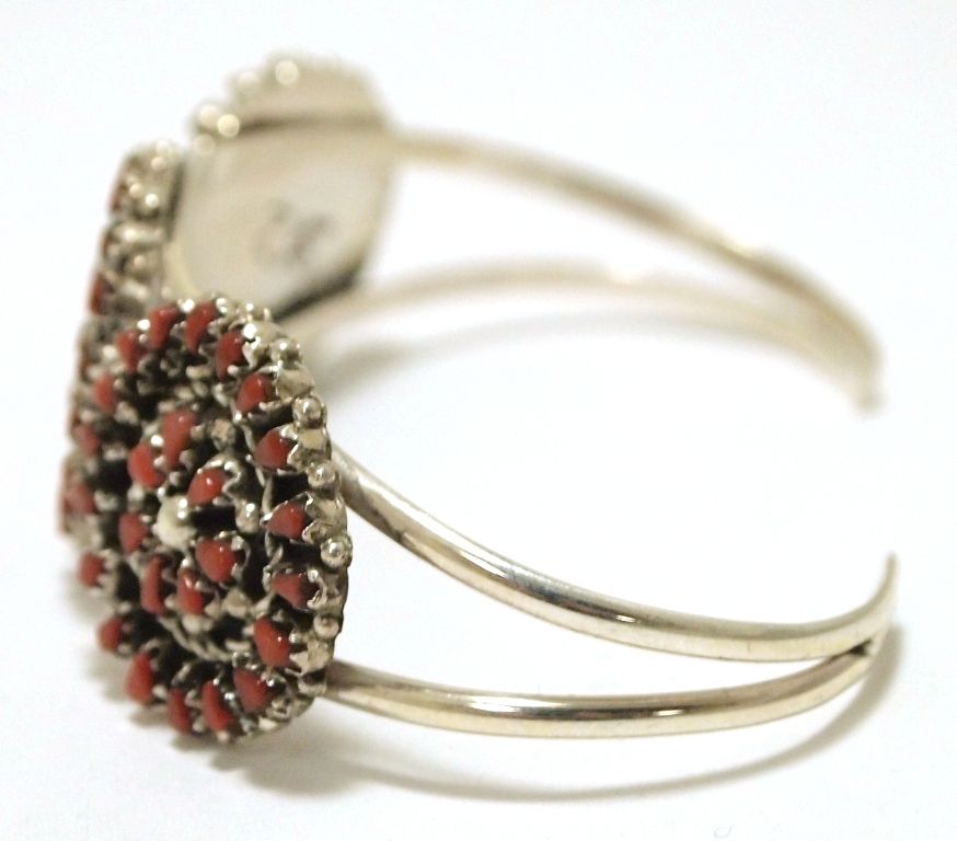 Zuni Coral Sterling Silver Cuff Bracelet - Trudy Quetawaki