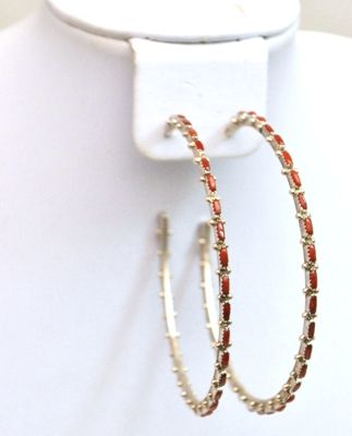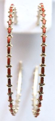 Zuni Coral Sterling Silver Large Hoop Post Earrings