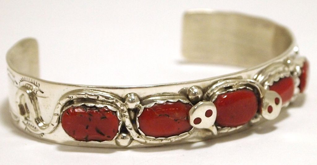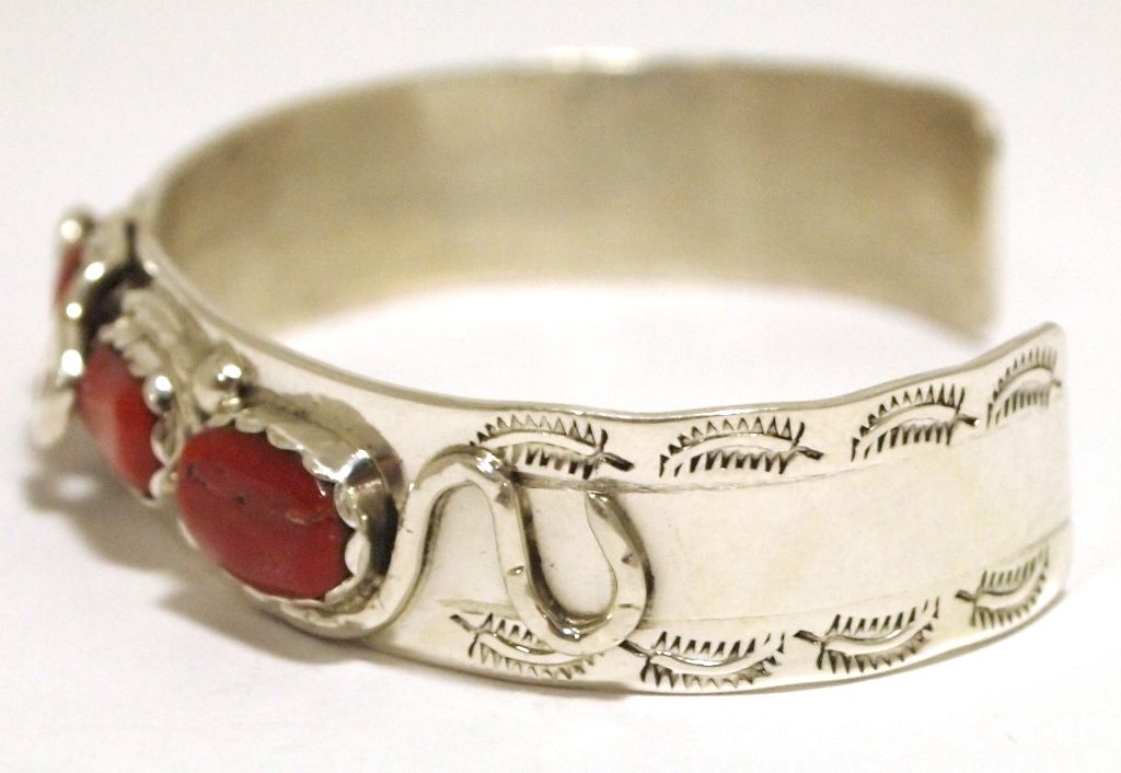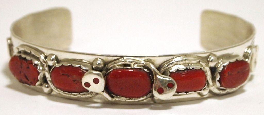 Zuni Coral Sterling Silver Snake Cuff Bracelet - Effie Calavaza