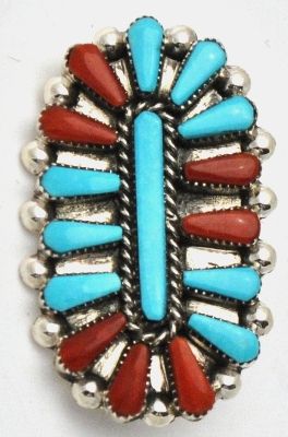 Zuni Coral & Turquoise Cluster Pendant & Pin - Vera Halusewa