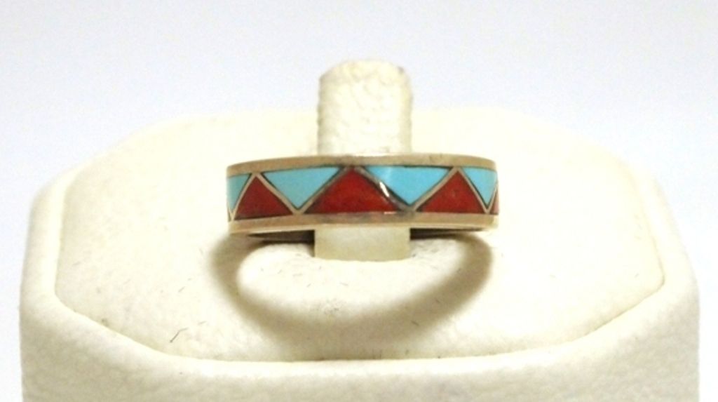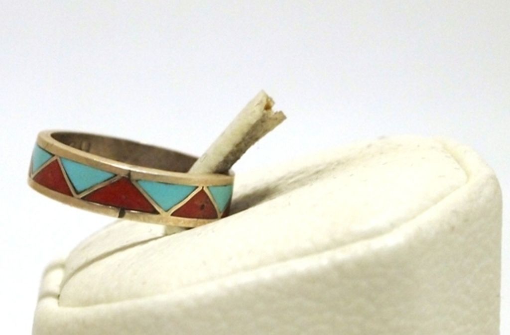 Zuni Coral & Turquoise Inlay Sterling Silver Men's Ring - Carmichael Haloo