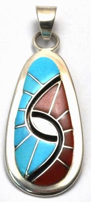 Zuni Coral & Turquoise Pendant - Amy Quandelacy