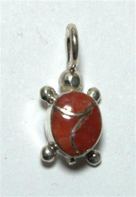 Zuni Coral Turtle Pendant