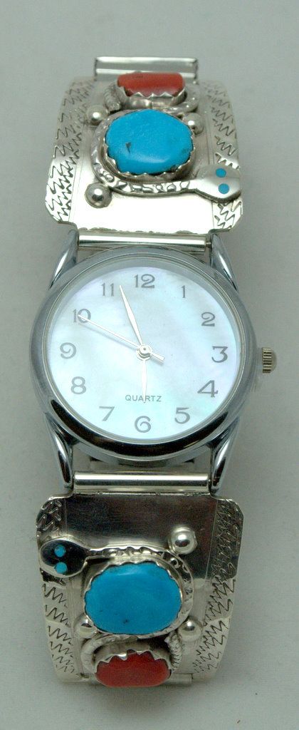 Zuni Coral and Turquoise Men's Watch - Effie Calavaza