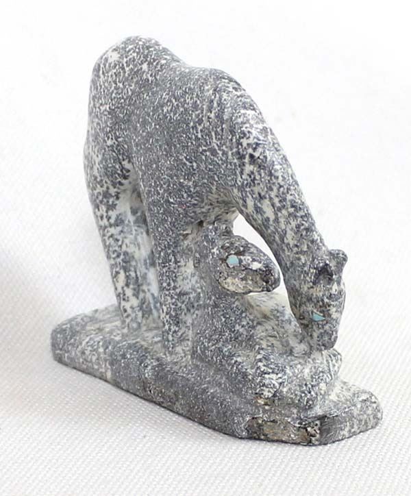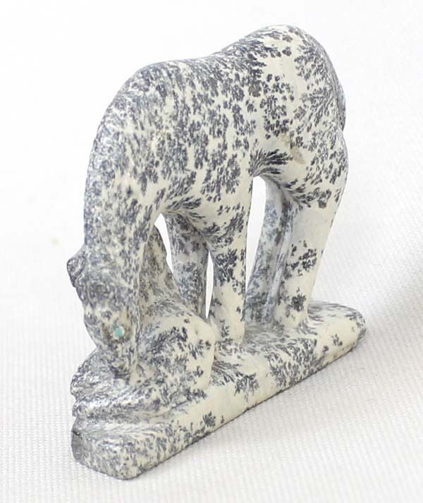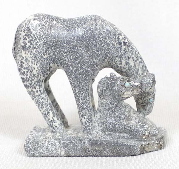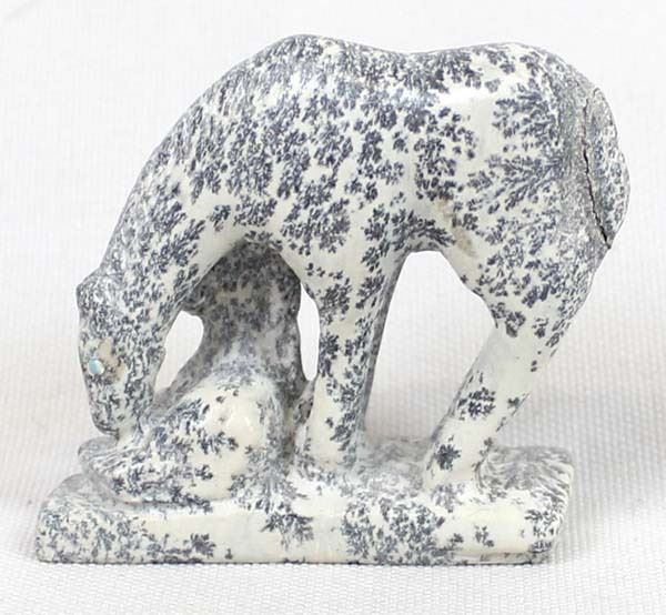 Native American Zuni Carved Dendritic Jasper Horse & Colt Fetish by Hubert Pinion, measures 3'' x 2'' x .5'' and has artist's initials on the bottom, turquoise eyes